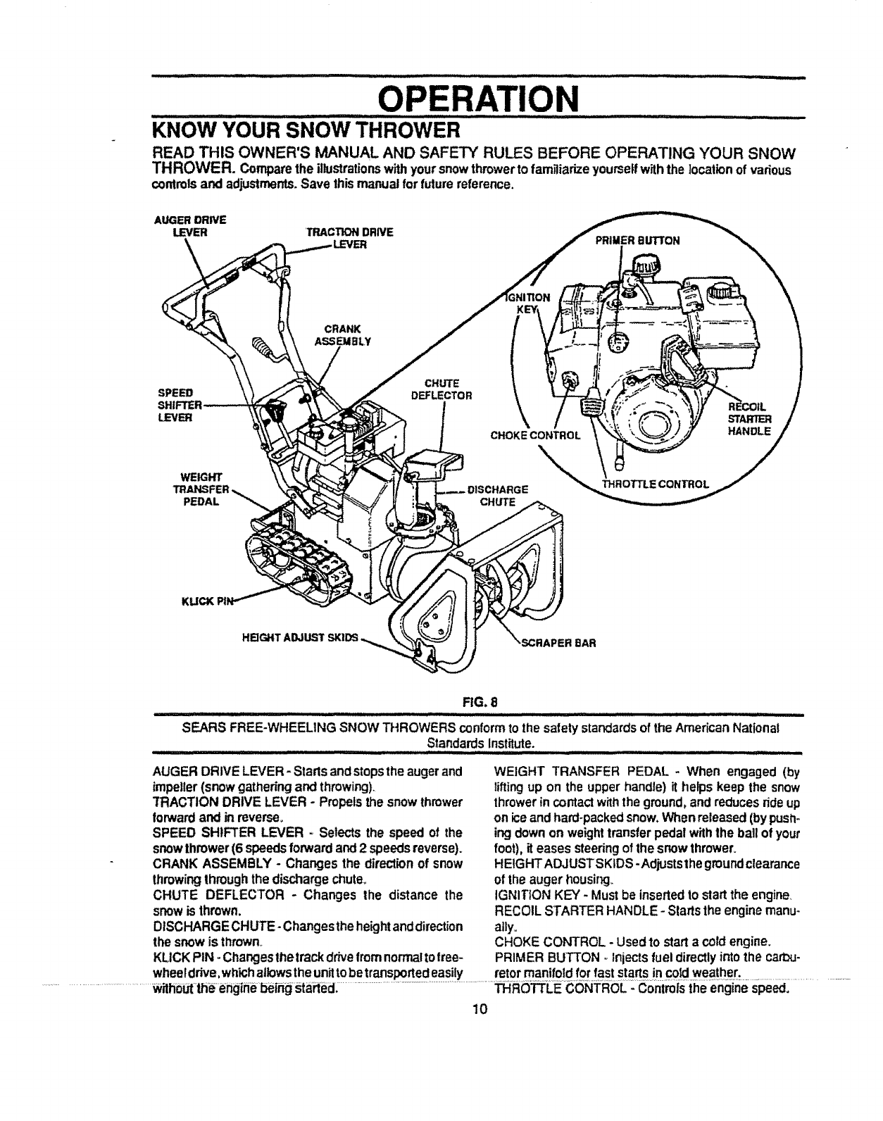 use of the snow thrower. Know how to stop the