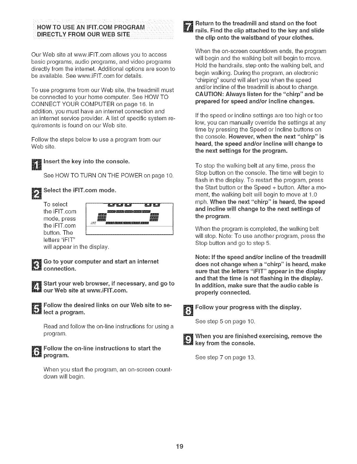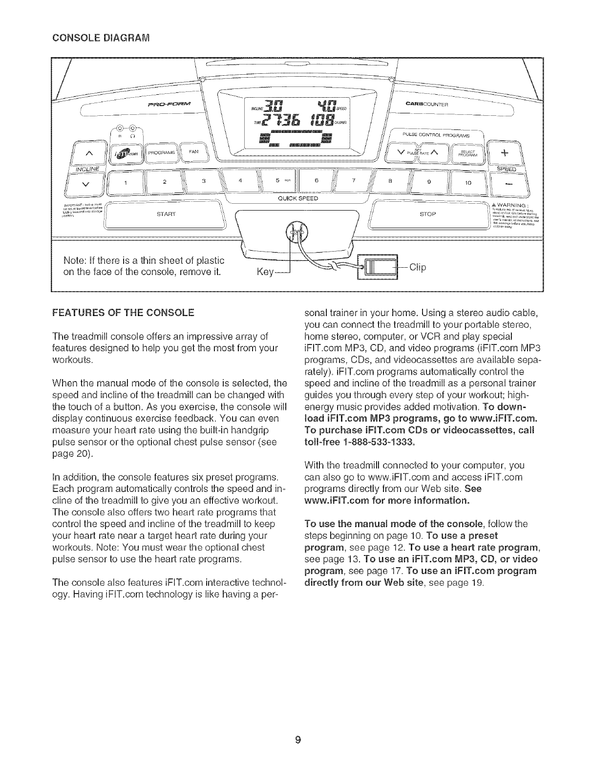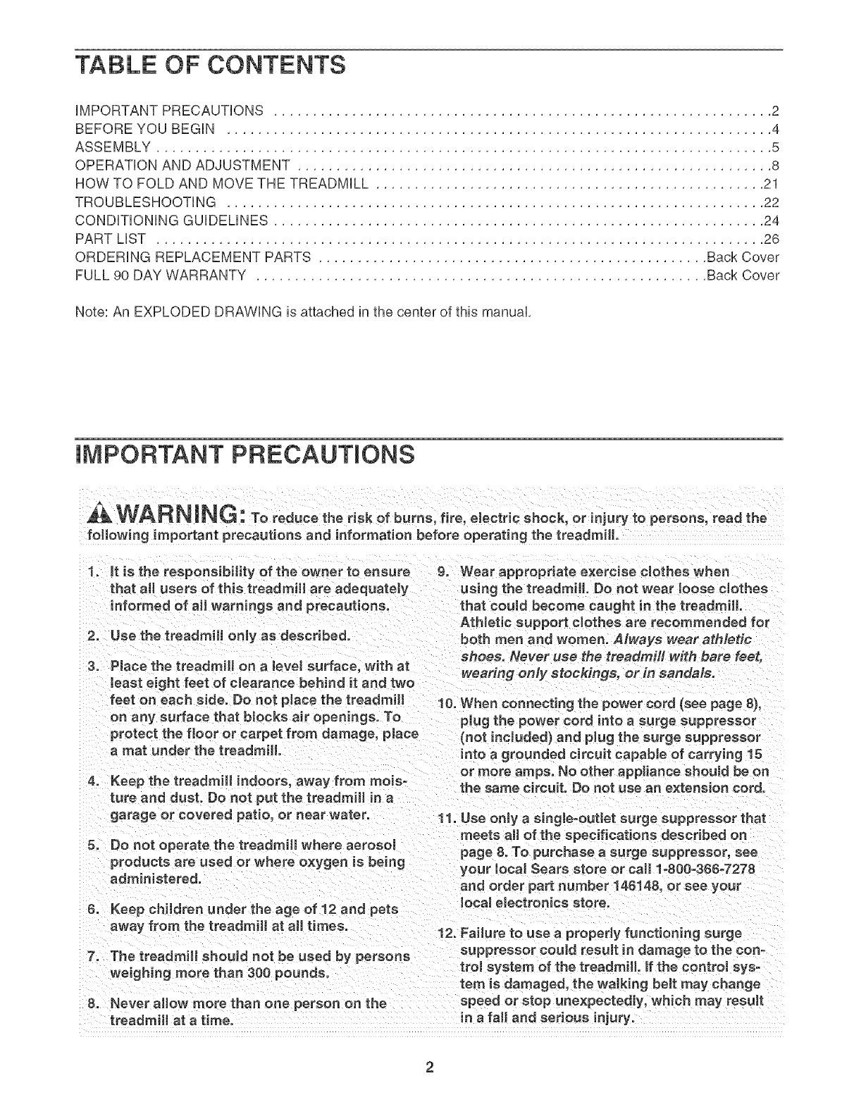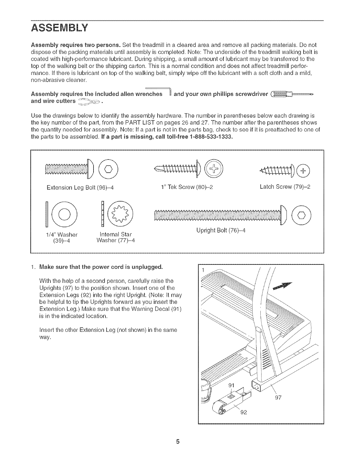 FORE YOU BEGIN on page 4 if the treadmill
