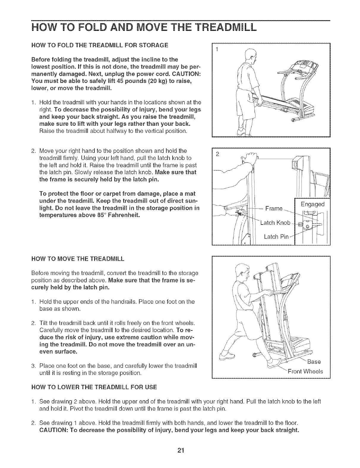 HOW TO FOLD AND MOVE THE TREADMILL .................................................. 21
