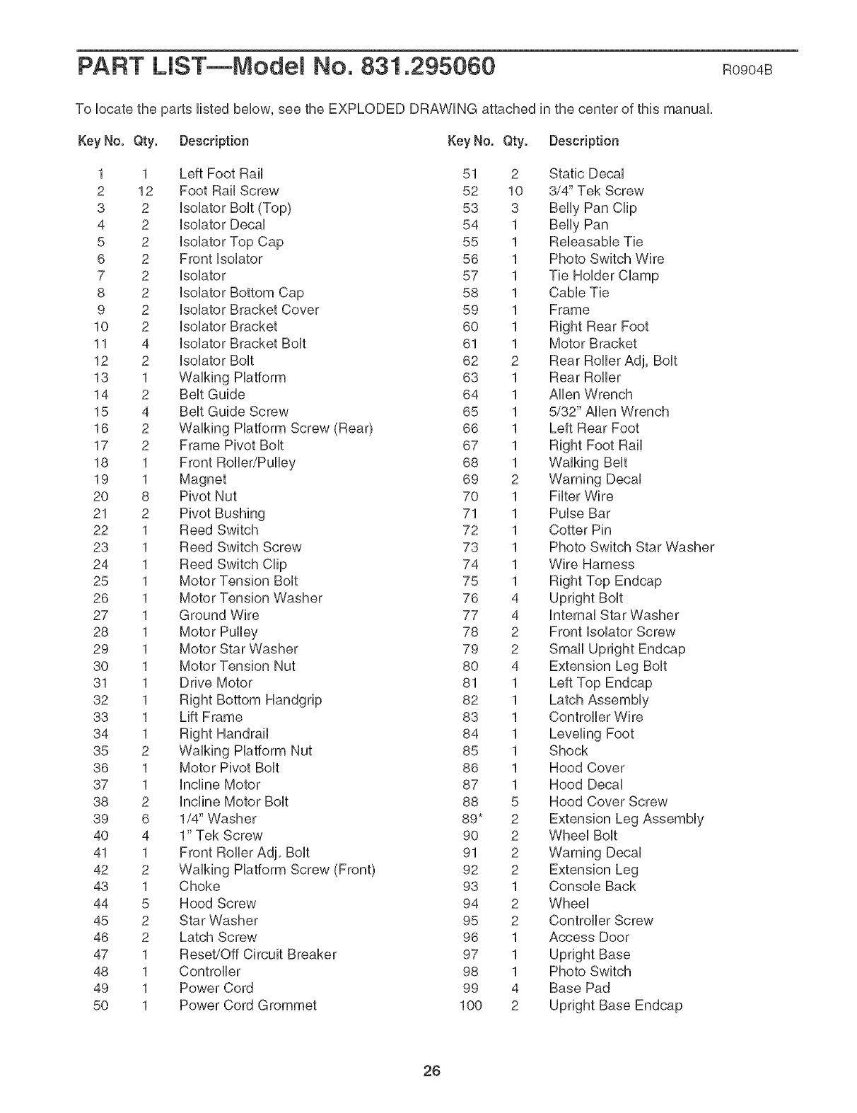 Note: An EXPLODED DRAWING is attached in the center of this manual.