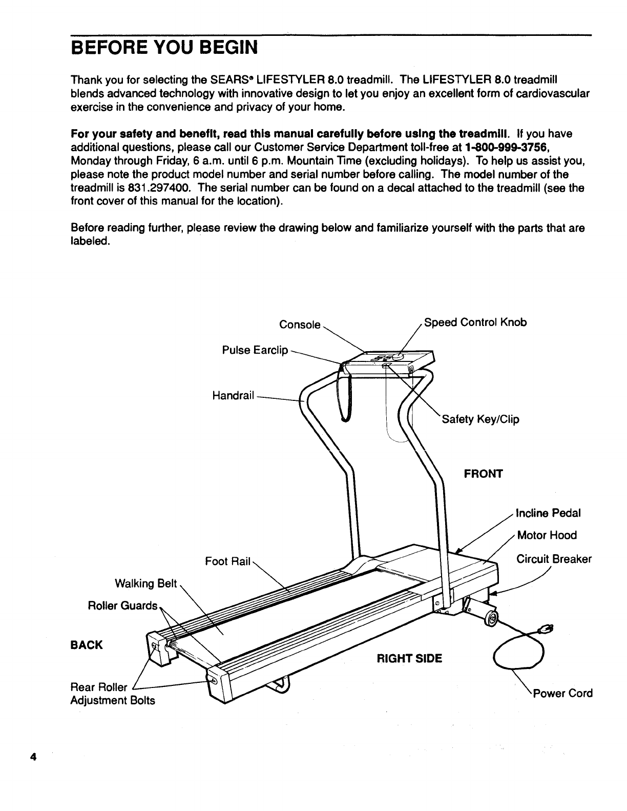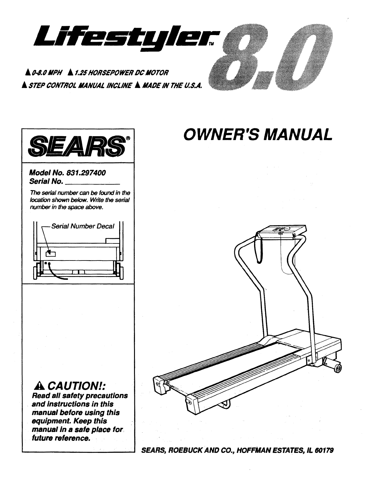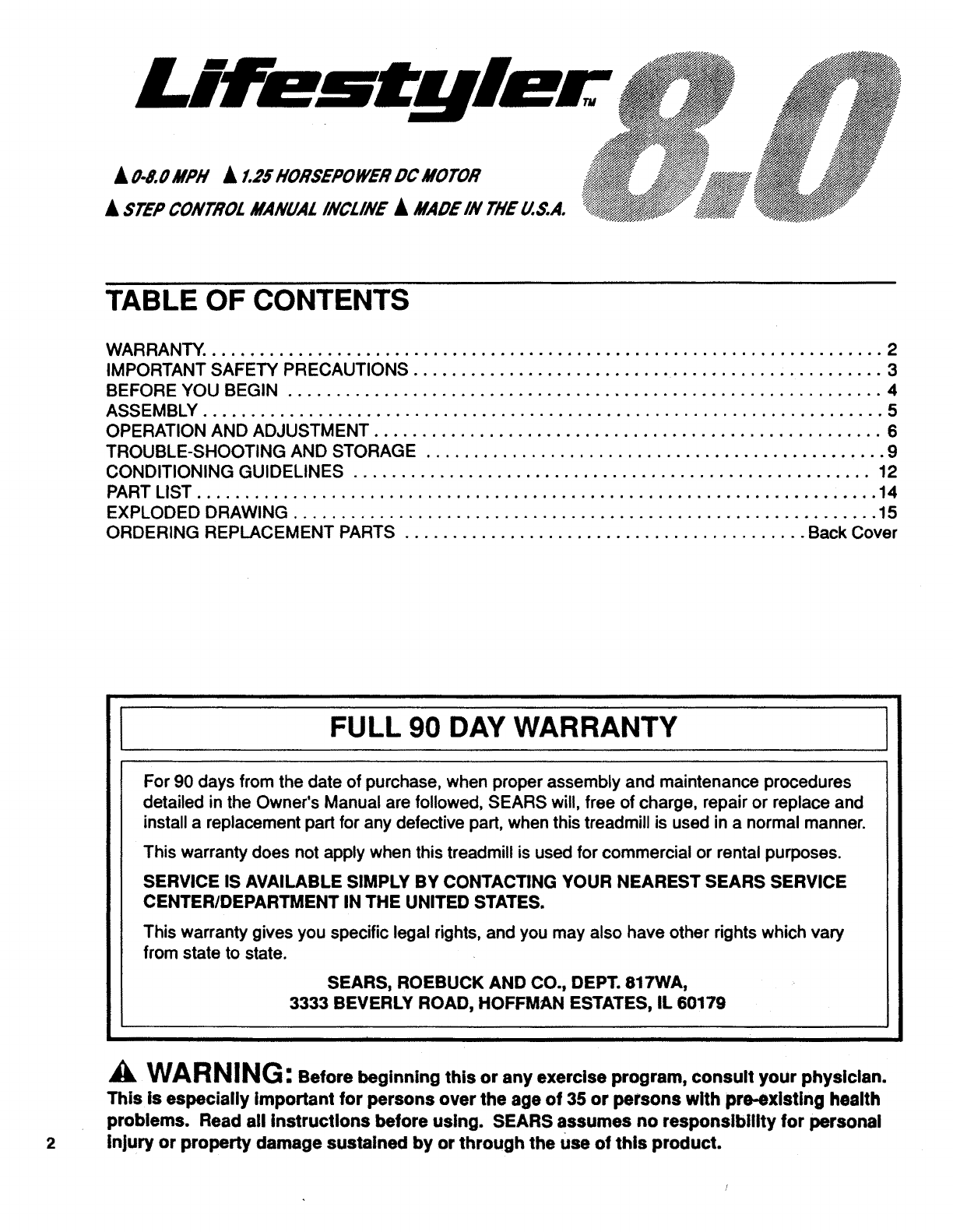 Thank you for selecting the SEARS _ LIFESTYLER 8.0 treadmill. The LIFESTYLER 8.0 treadmill