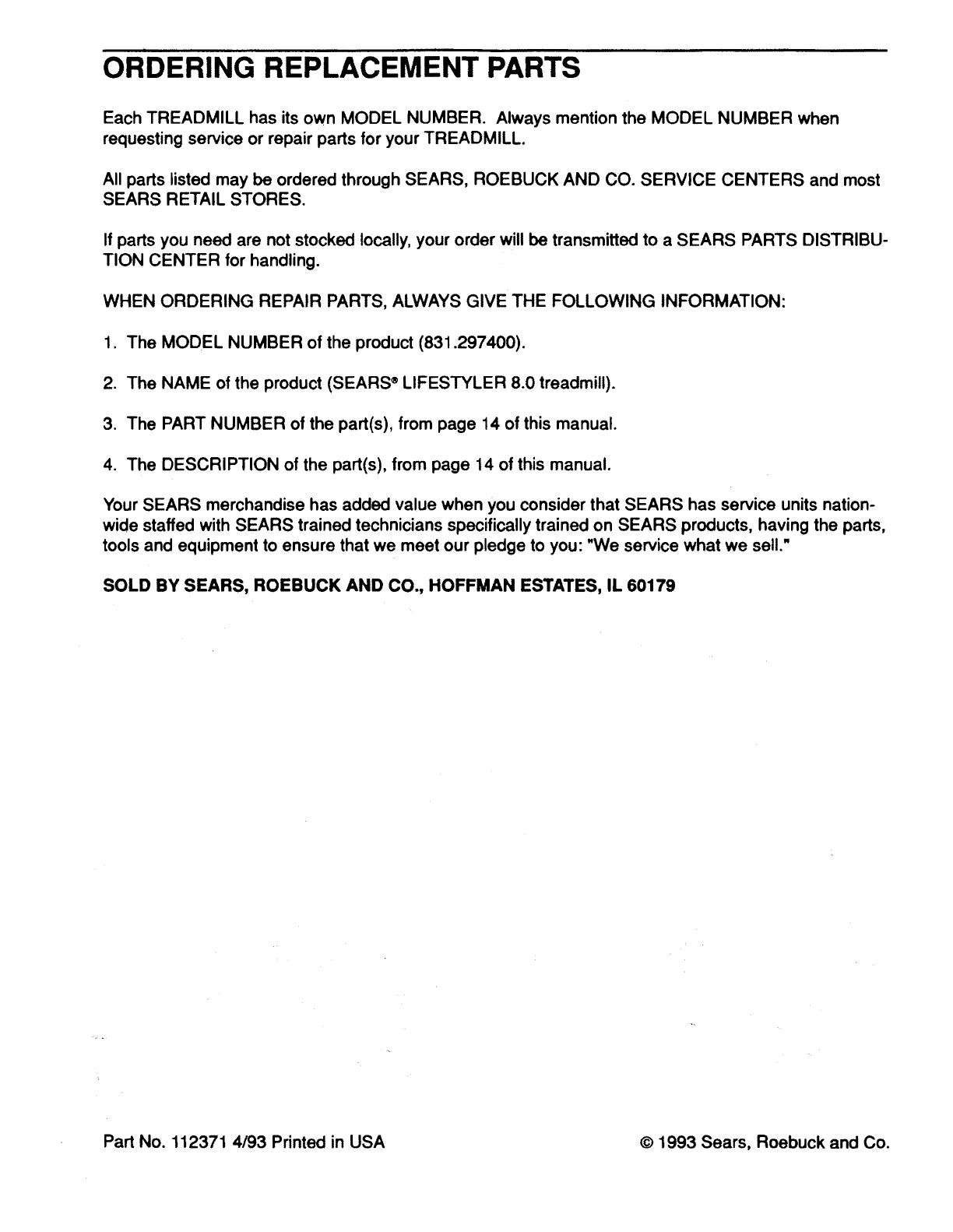 Part No. 112371 4/93 Printed in USA ©1993 Sears, Roebuck and Co.