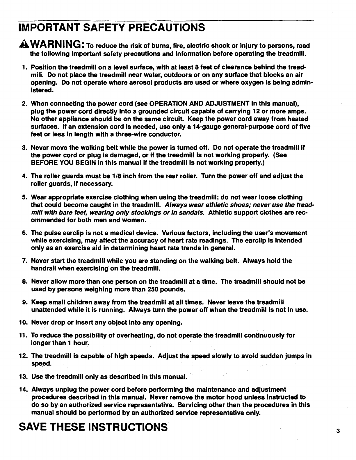 the followlng Important safety precautions and Informatlon before operatlng the treadmlll.