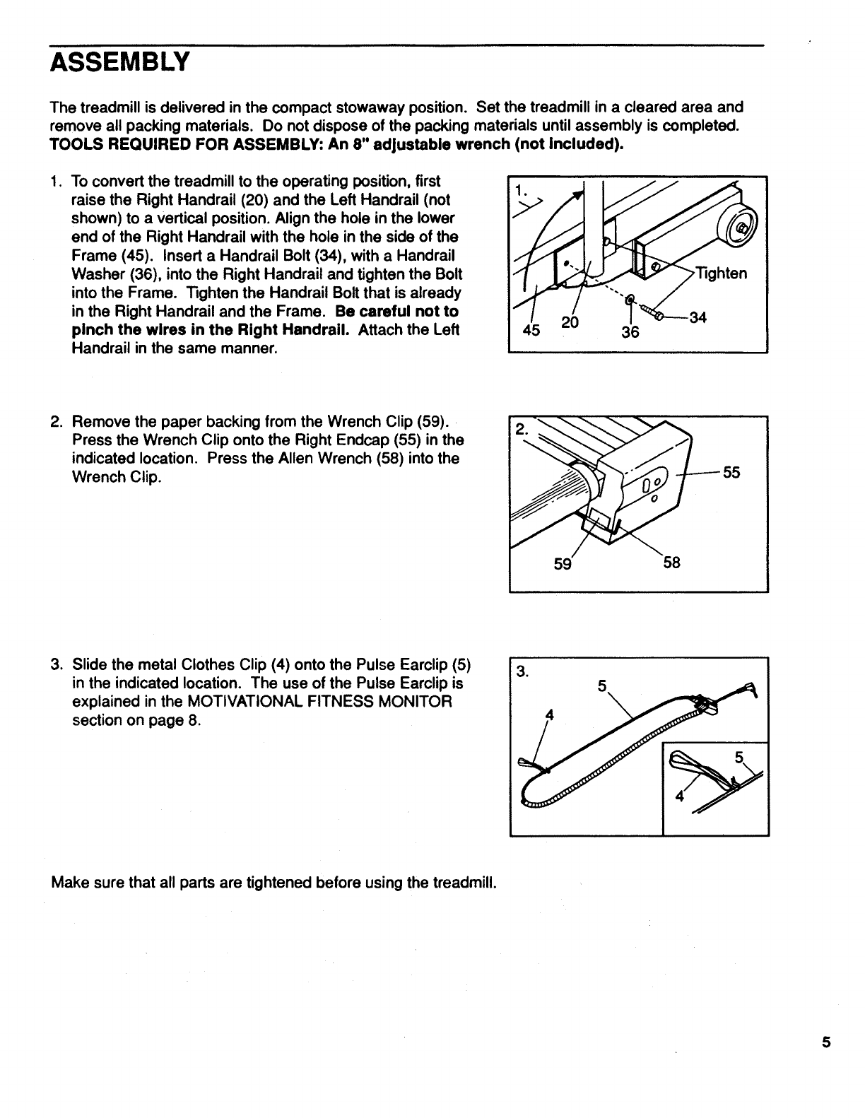 5. Wear appropriate exercise clothing when uslng the treadmill; do not wear loose clothing