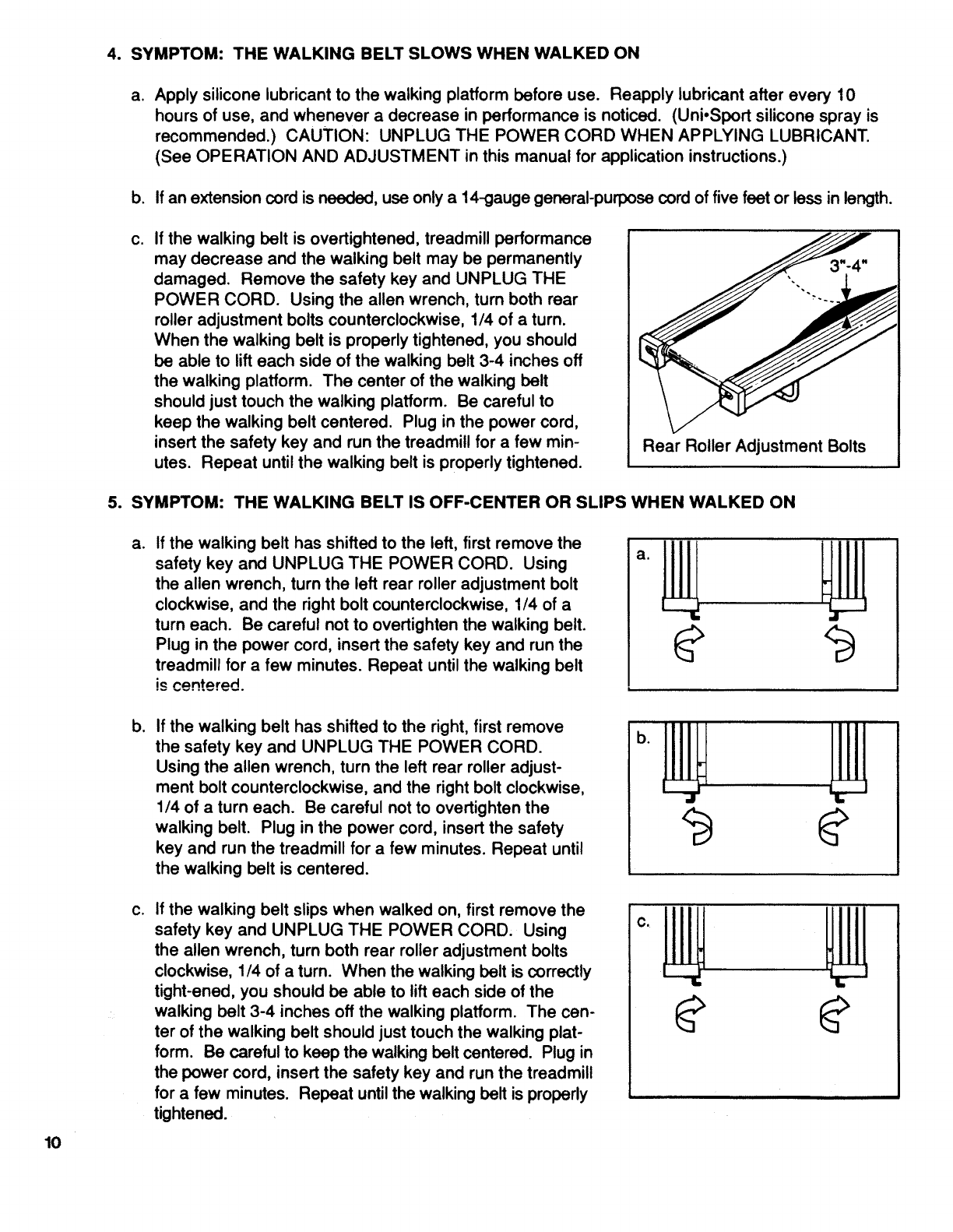3. Never move the walking belt while the power Is turned off. Do not operate the treadmill if