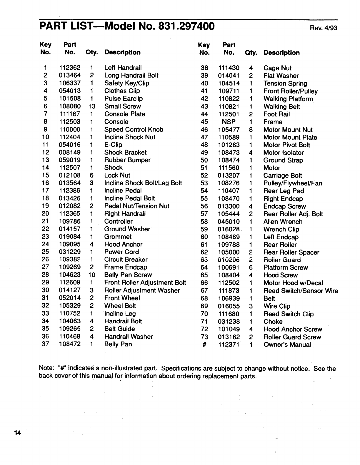 EXPLODED DRAWING.--Model No. 831.297400 Rev.4/93