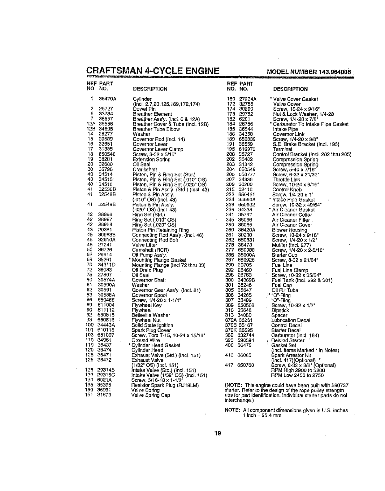 • ENGINE _CRAFTSMAN. MODEL NO. 143.964006