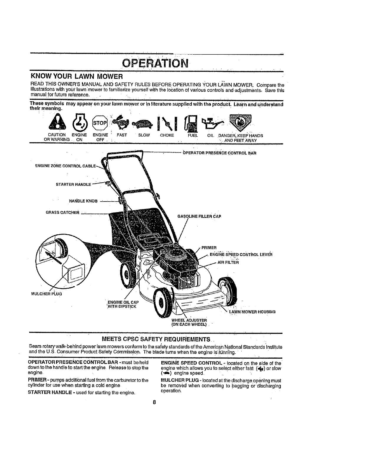 SAFETY STANDARDS REQUIRE OPERATOR PRESENCE CONTROLS TO MINIMIZE THE RISK OF INJURY. YOUR UNIT IS