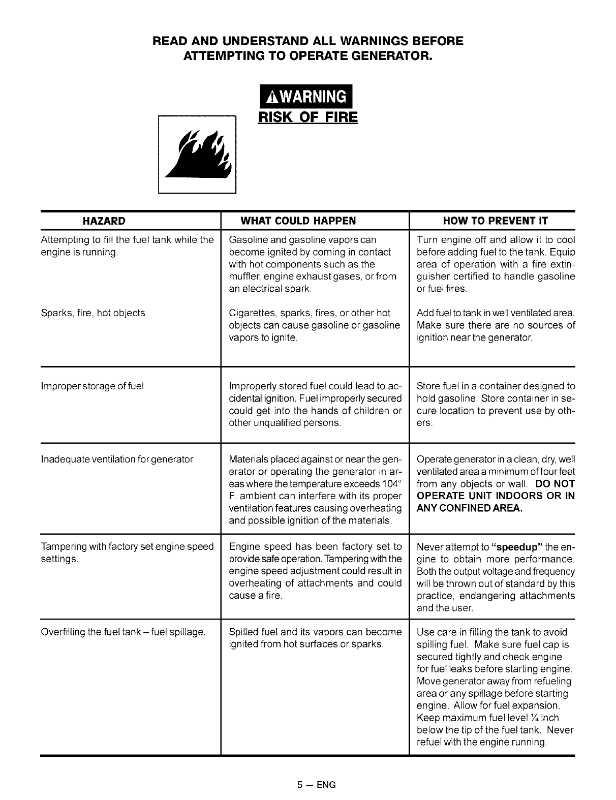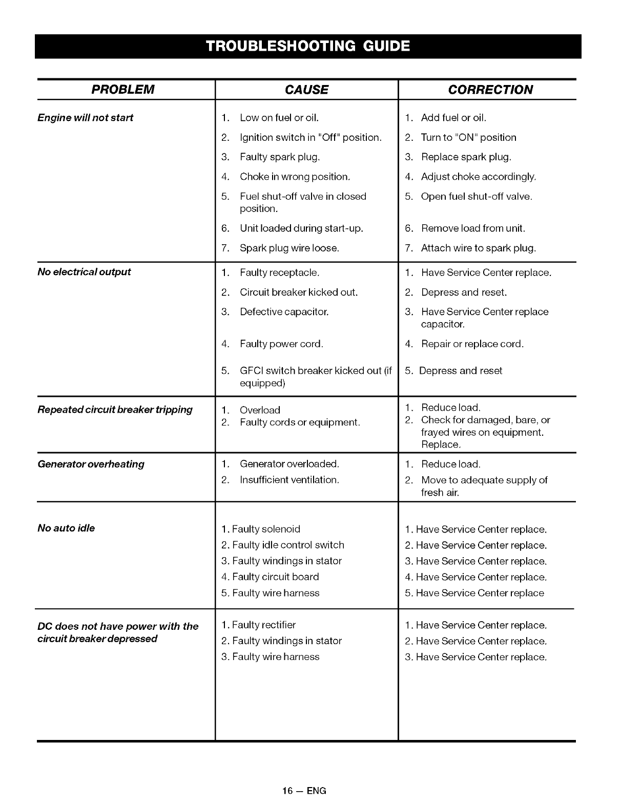 from the date of purchase. This warranty does not cover: Expendable items such as spark plugs and air
