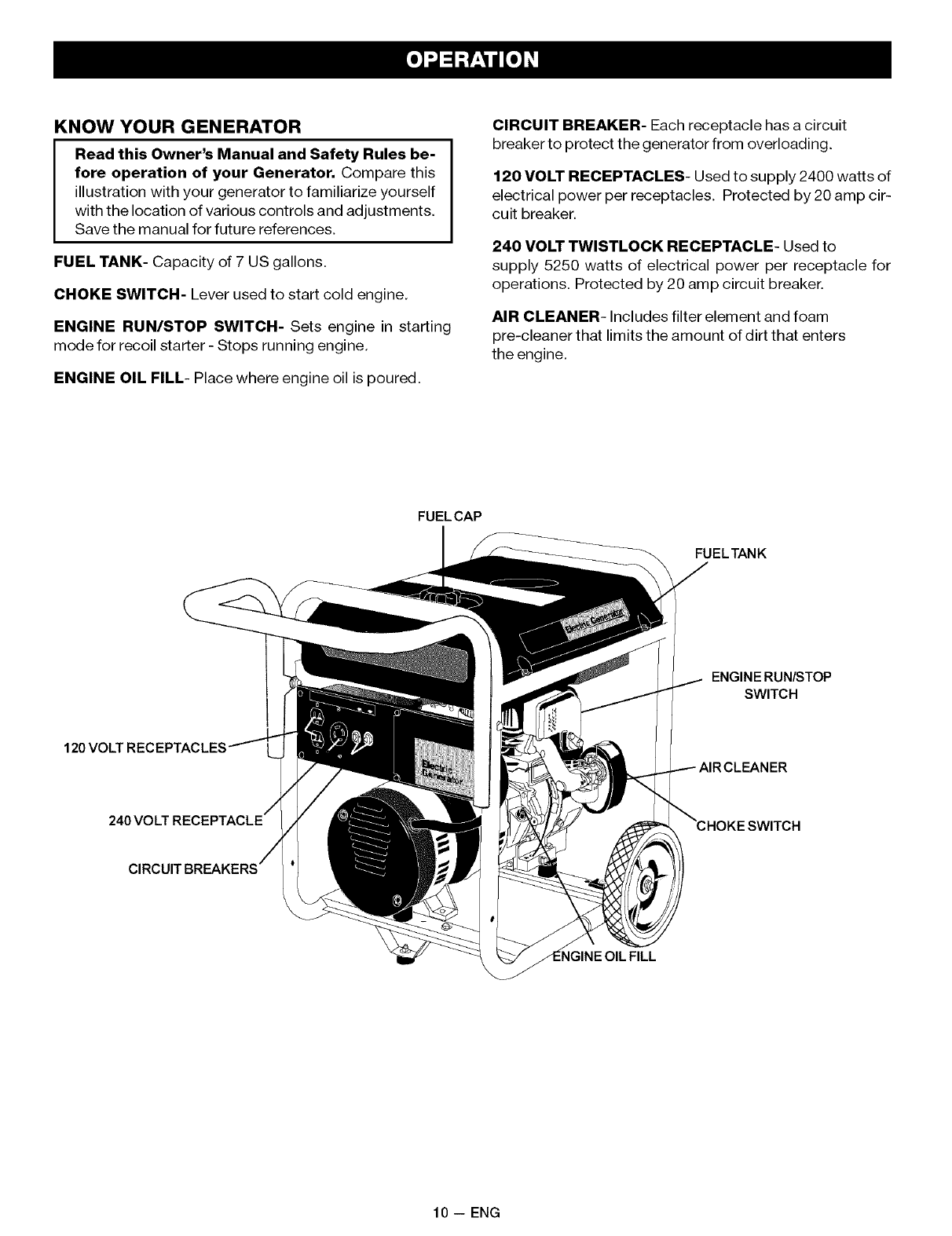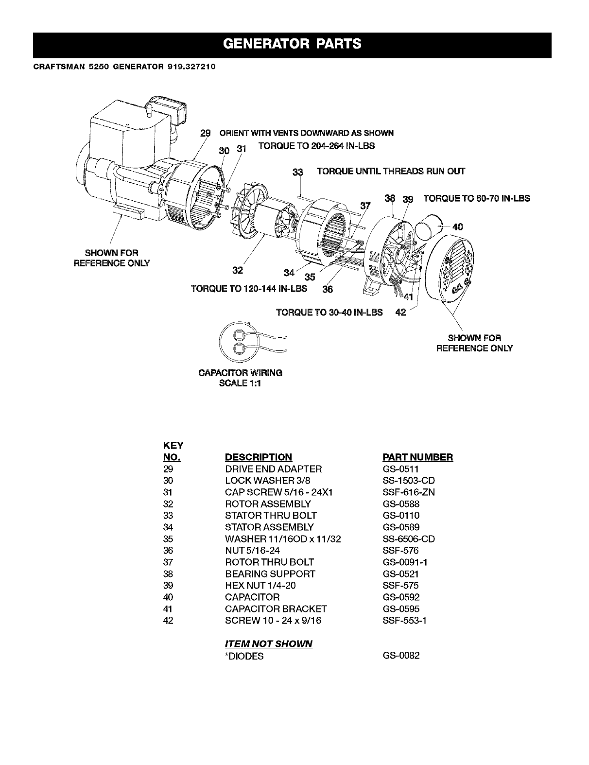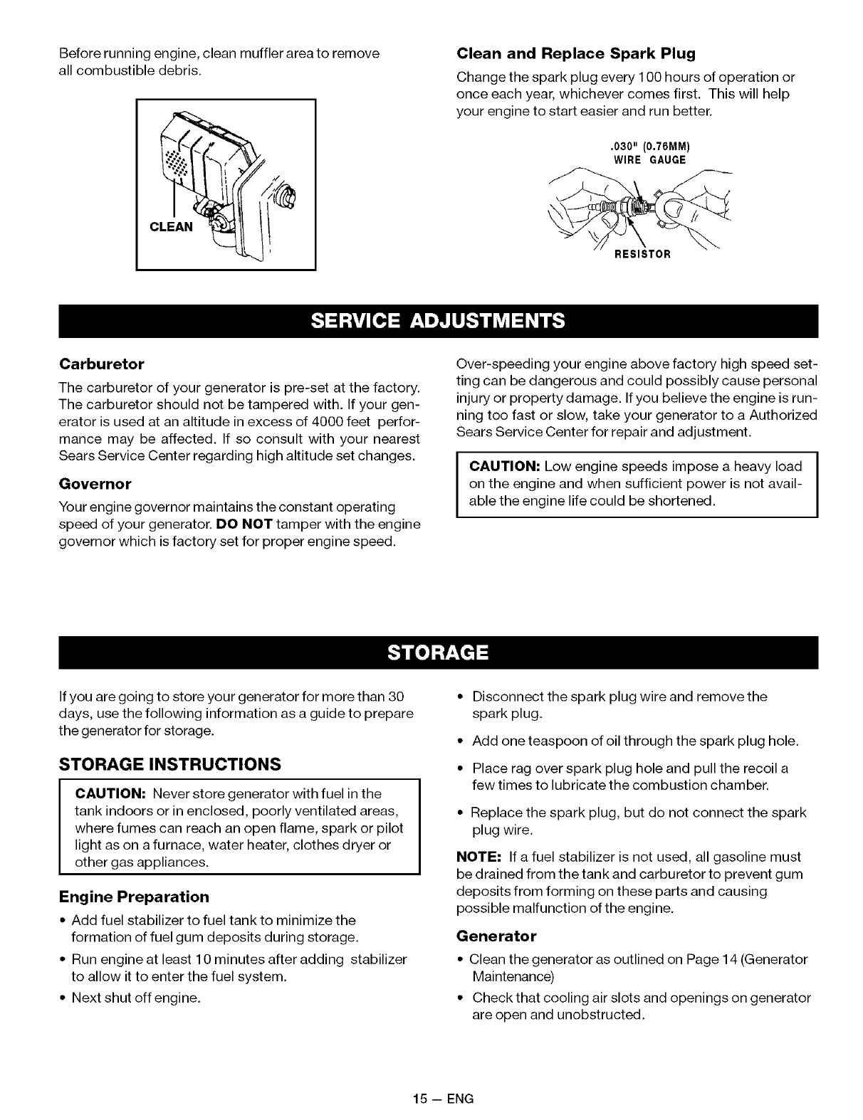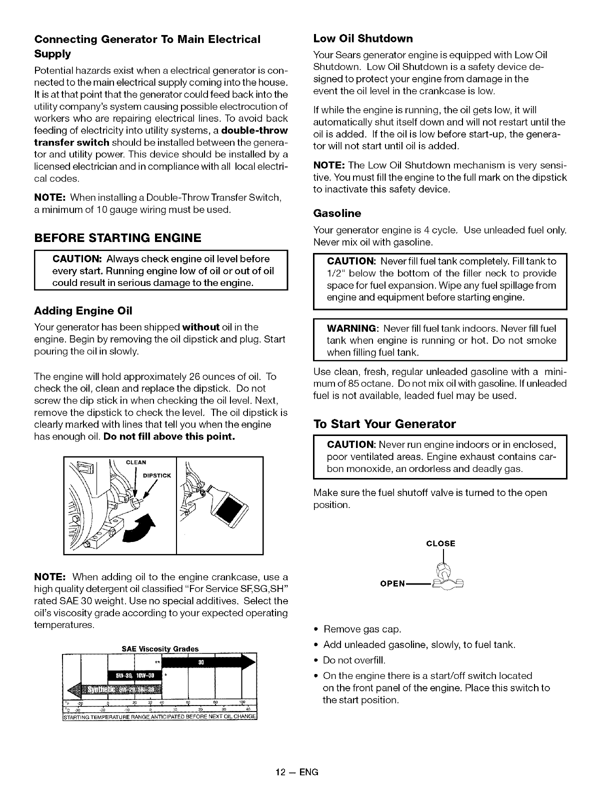 FULL ONE YEAR WARRANTY ON SEARS GENERATORS