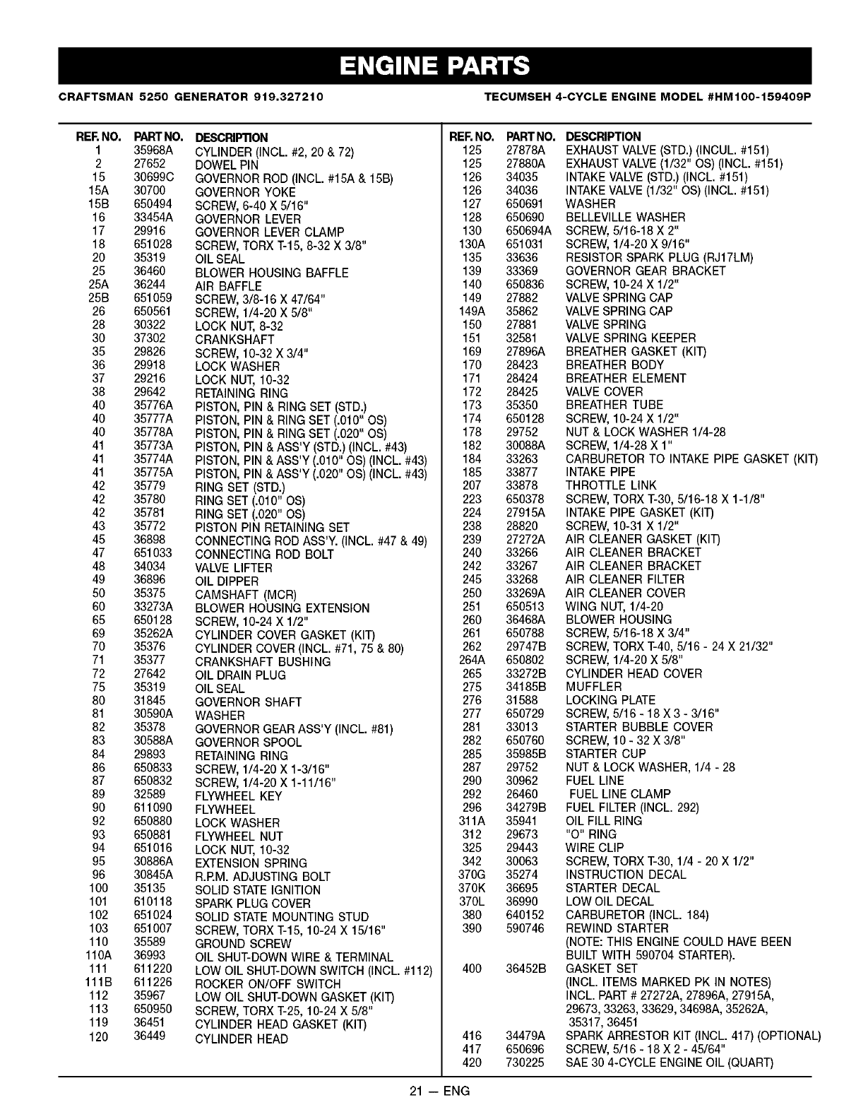 Ifyour Tecumseh engine is used for commercial or rental purposes, this warranty applies only for 90 days