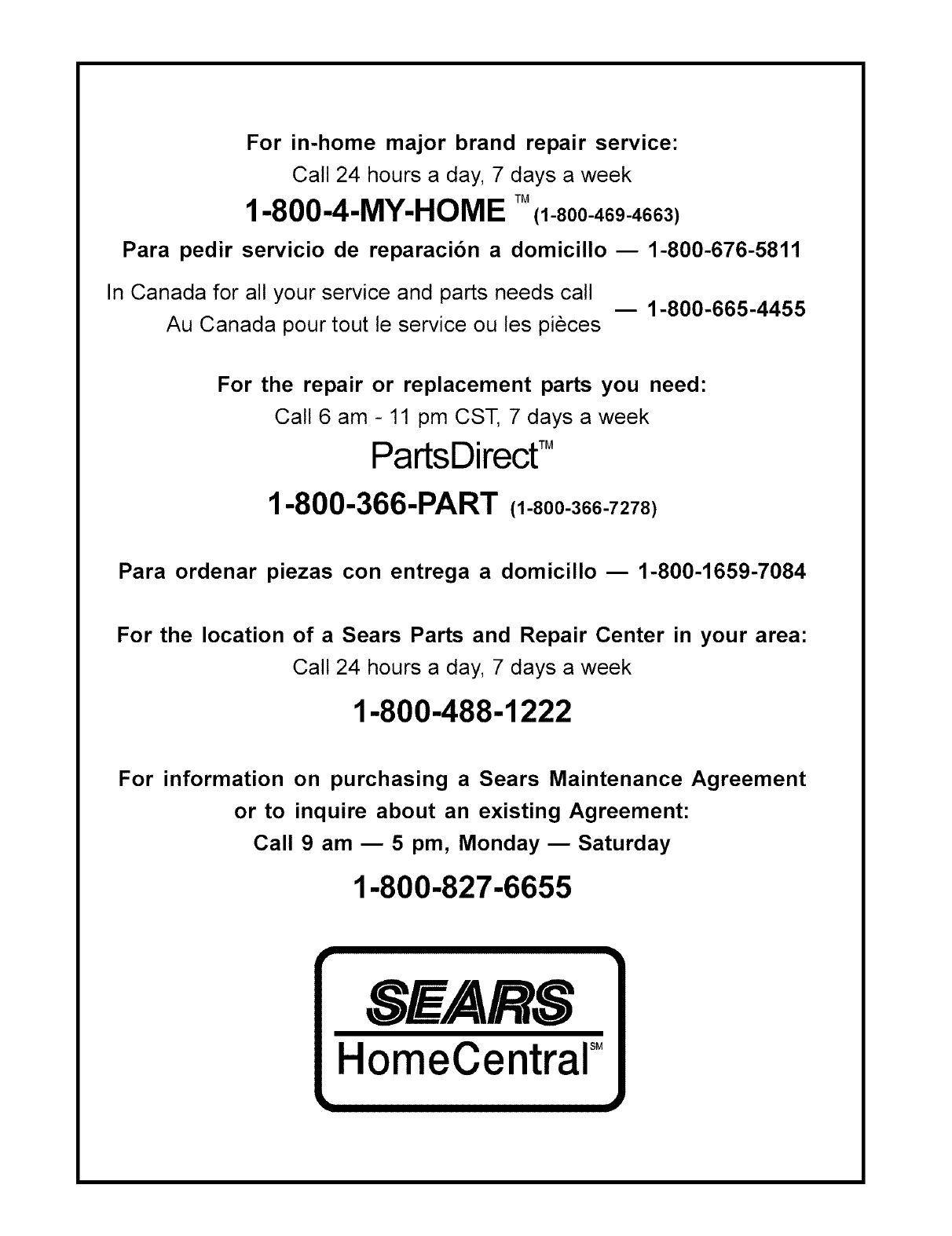 For information on purchasing a Sears Maintenance Agreement