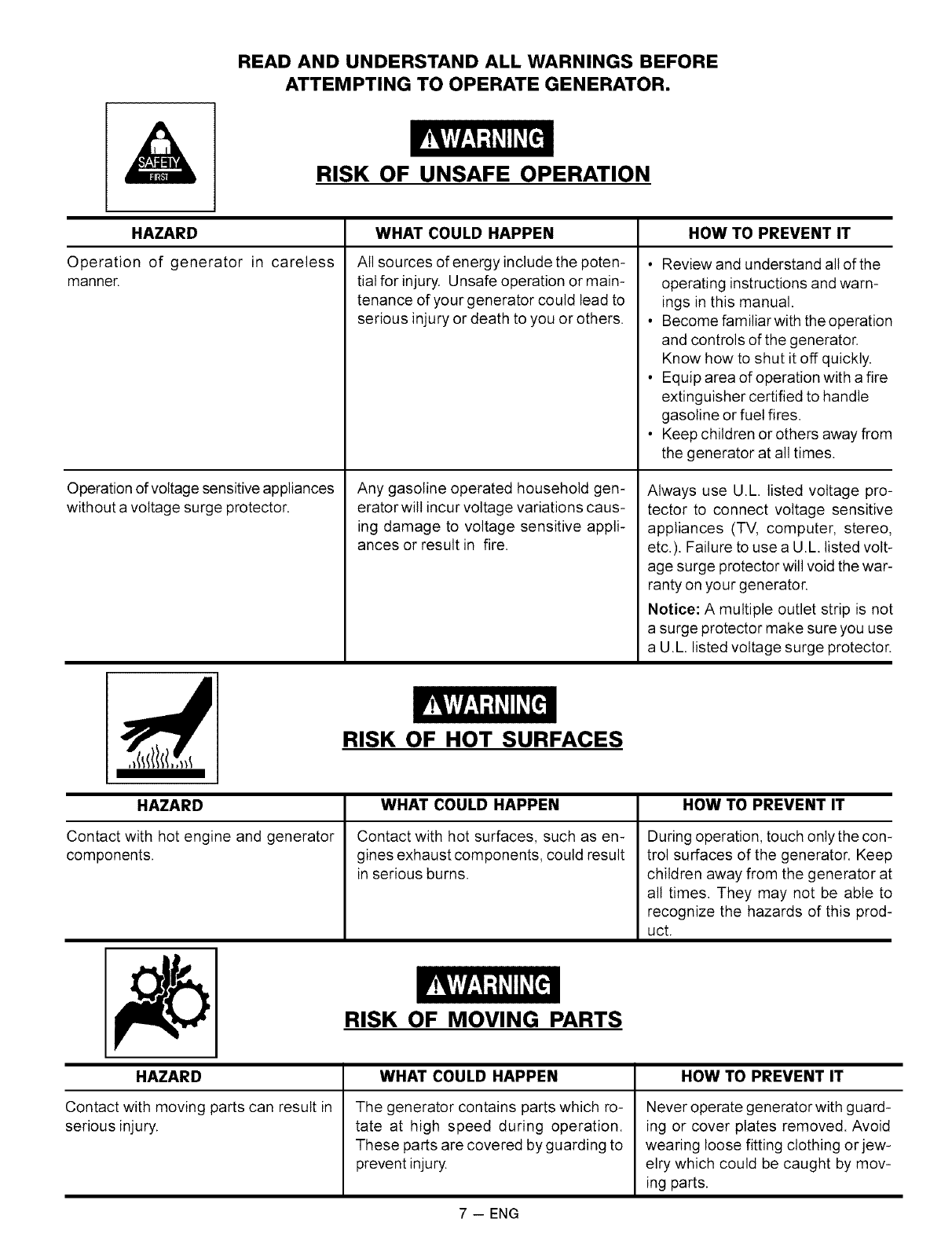 If your Sears Generator is used for commercial or rental purposes, this warranty applies for only 90 days from