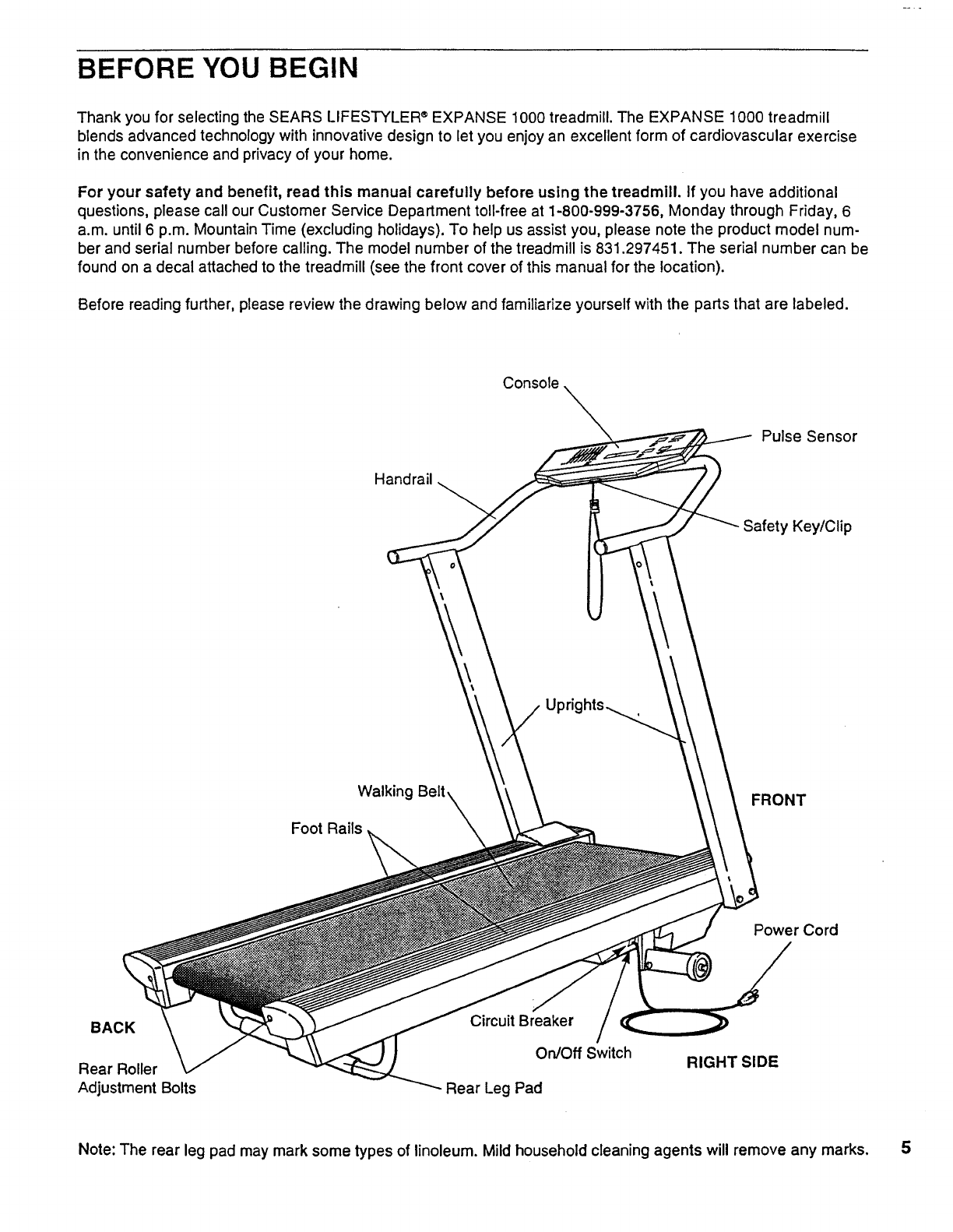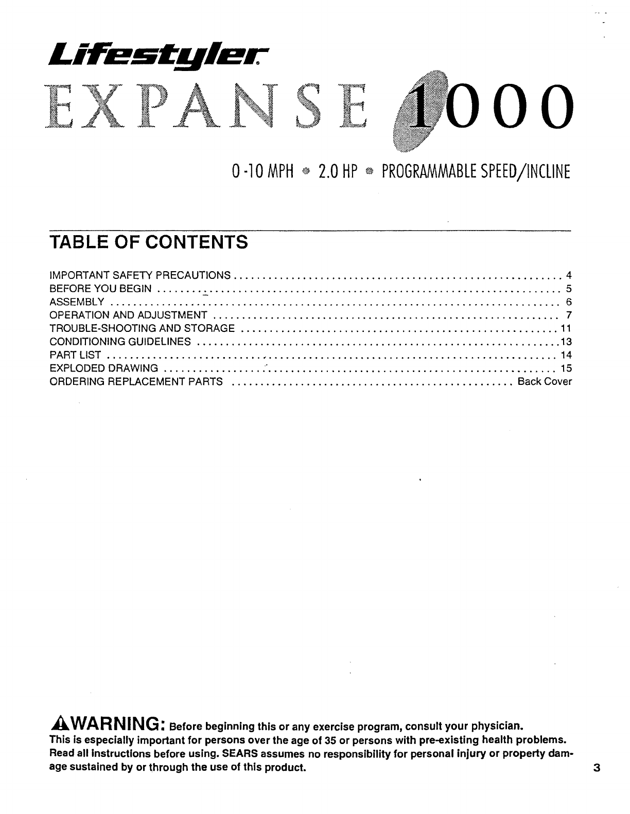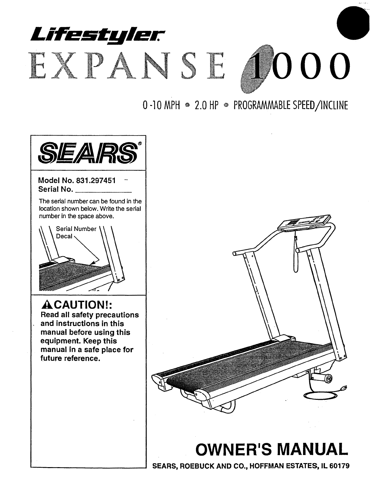 Thank you for selecting the SEARS LIFESTYLER ®EXPANSE 1000 treadmill. The EXPANSE 1000 treadmill