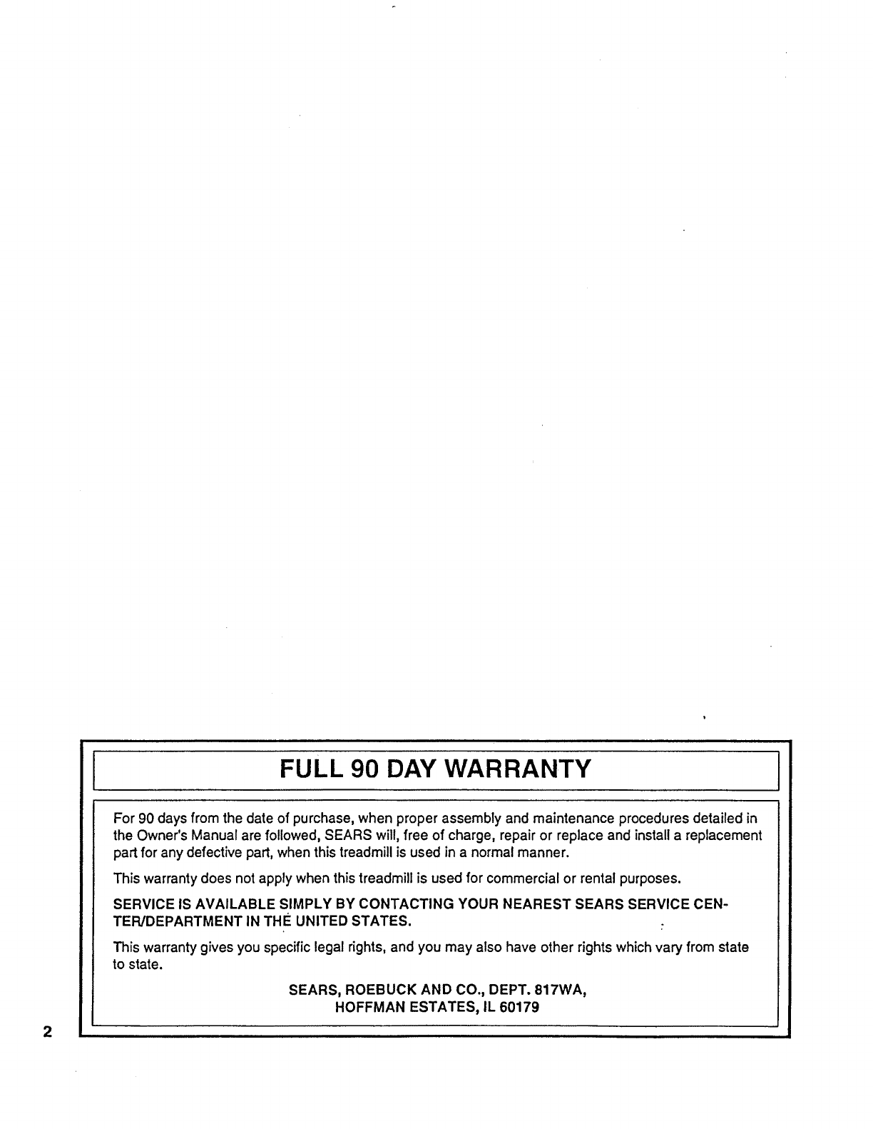 Your SEARS TREADMILL has added value when you consider that SEARS has service units nationwide, staffed