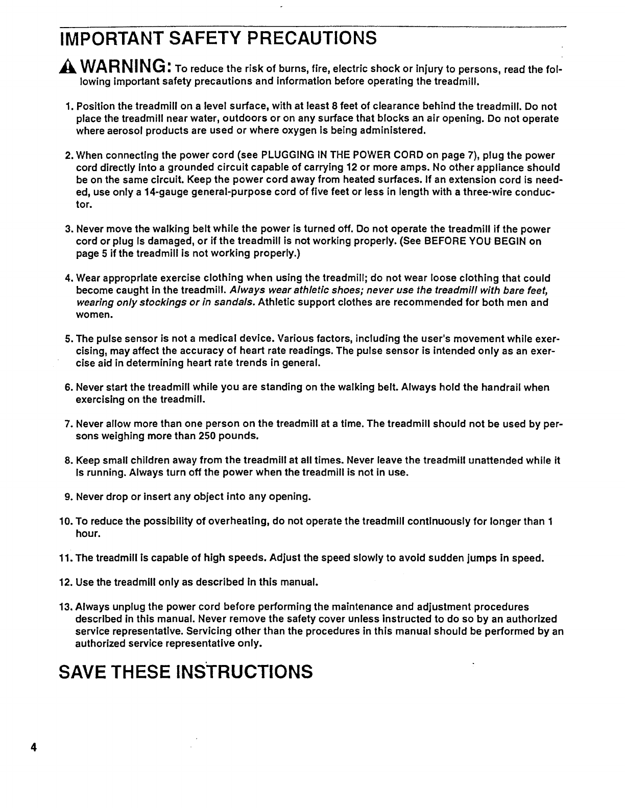 cord or plug Is damaged, or if the treadmill is not working properly. (See BEFORE YOU BEGIN on