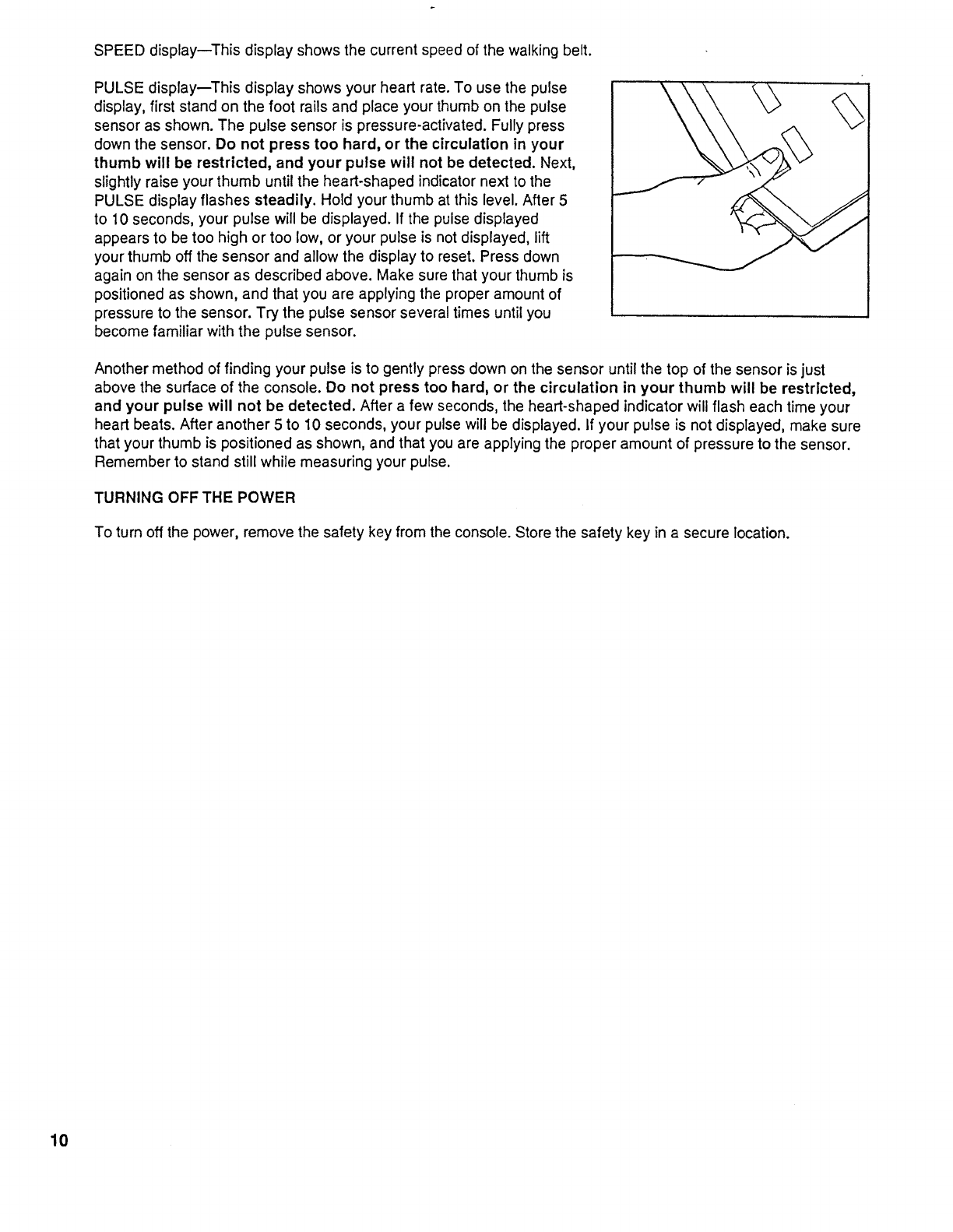 6. Never start the treadmill while you are standing on the walking belt. Always hold the handrail when