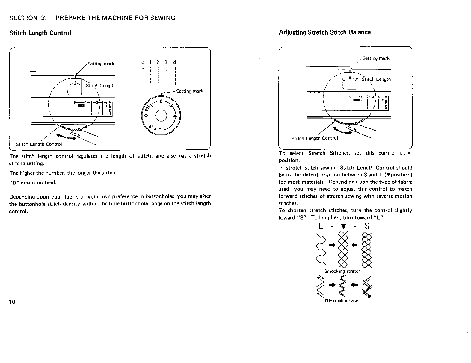 Stitch Length Control ........................ 16