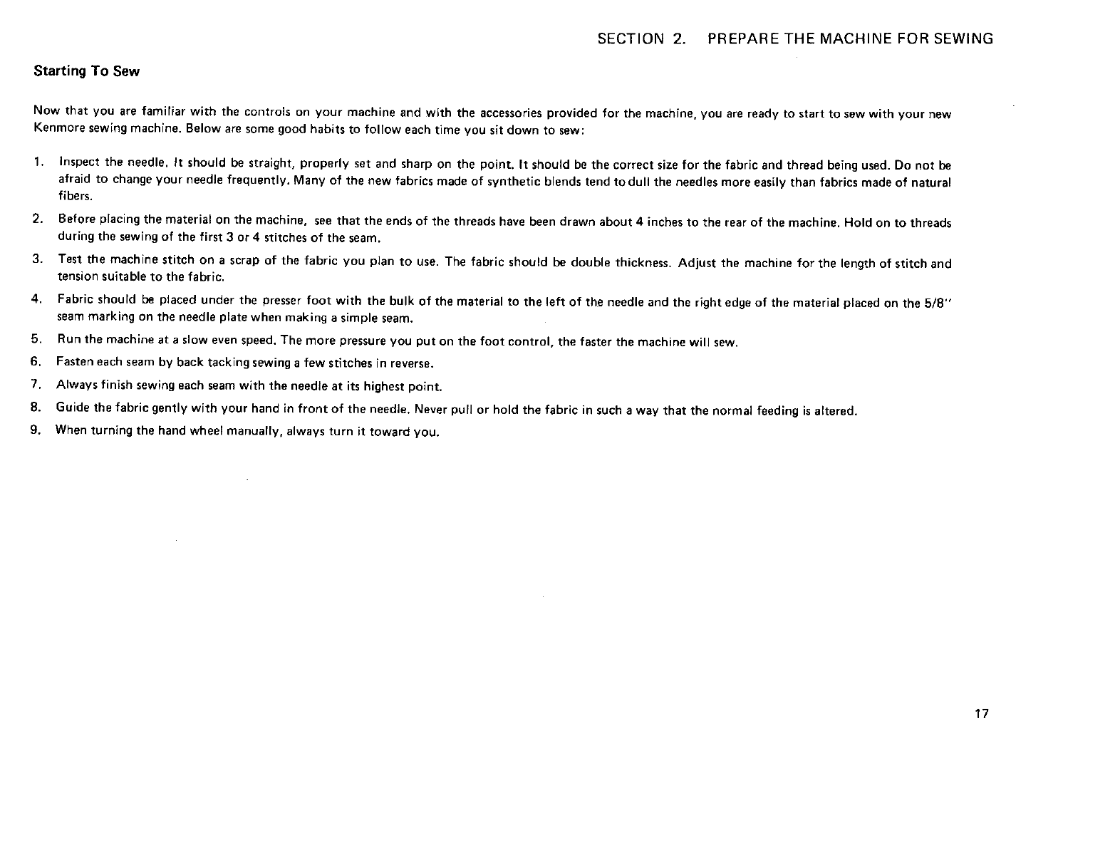 Starting To Sew ............................ 17