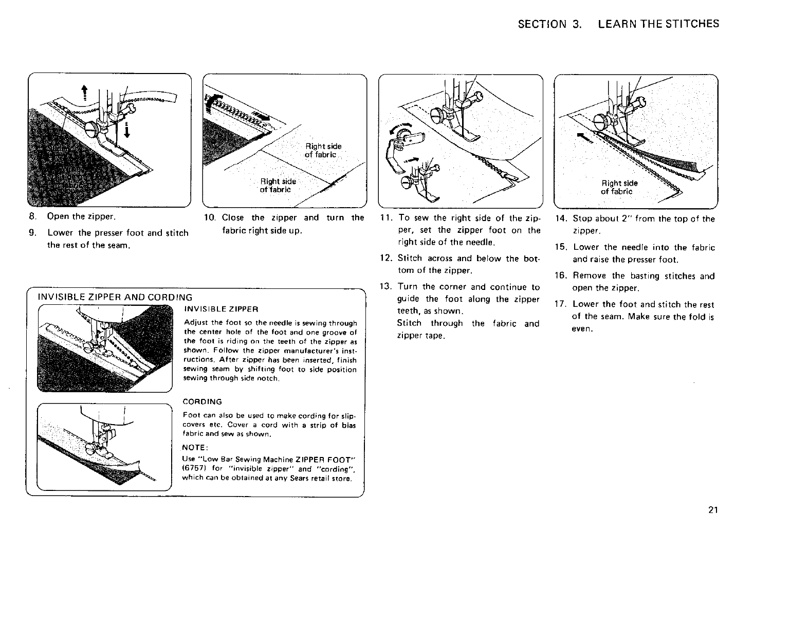 Invisible zipper .................... 21
