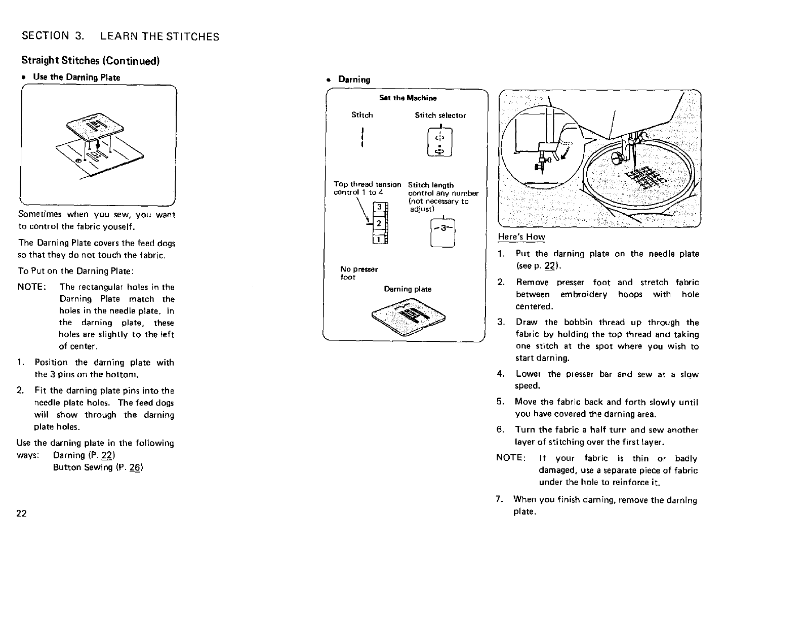 •Use the Darning Plate ...................... 22