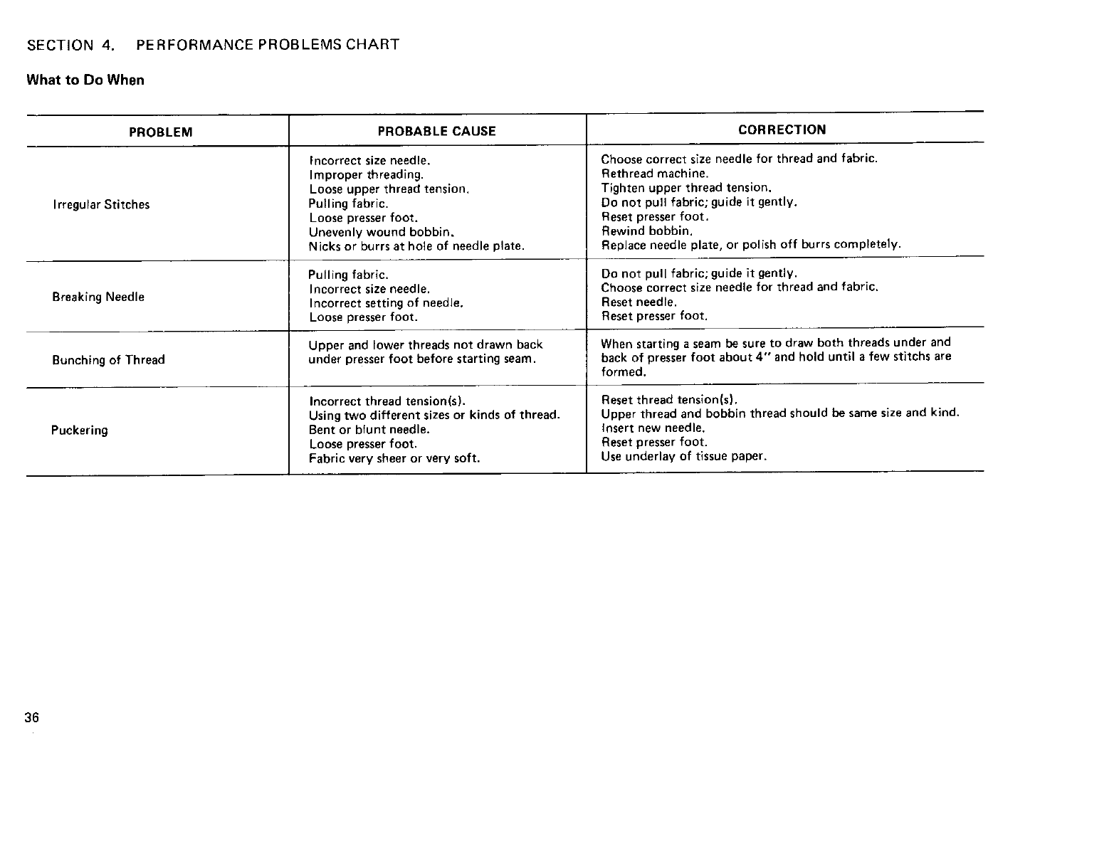 obtain the best sewing results and avoid unnecessary service expense for conditions beyond our control.