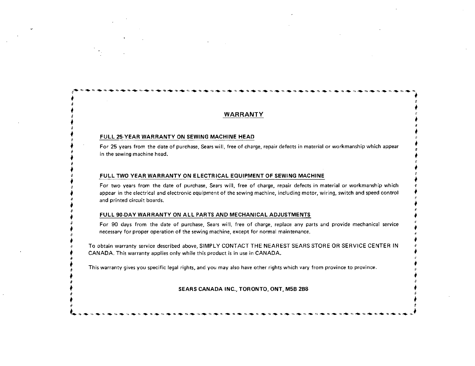 FULL 25-YEAR WARRANTY ON SEWING MACHINE HEAD _
