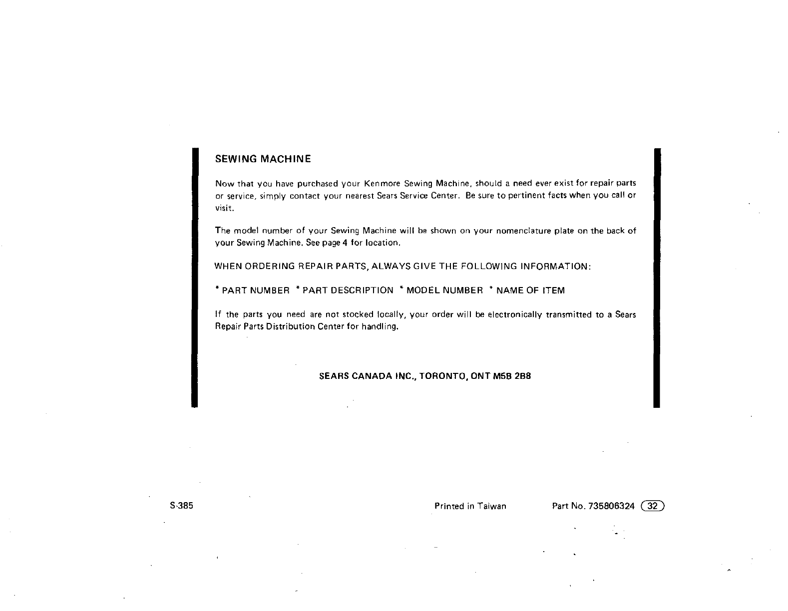 S-385 Printed in Taiwan Part No. 735806324 (_