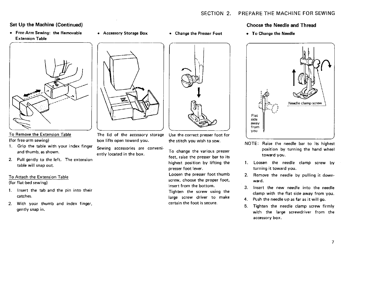 •Free Arm Sewing: the Removable Extension Table .. . 7