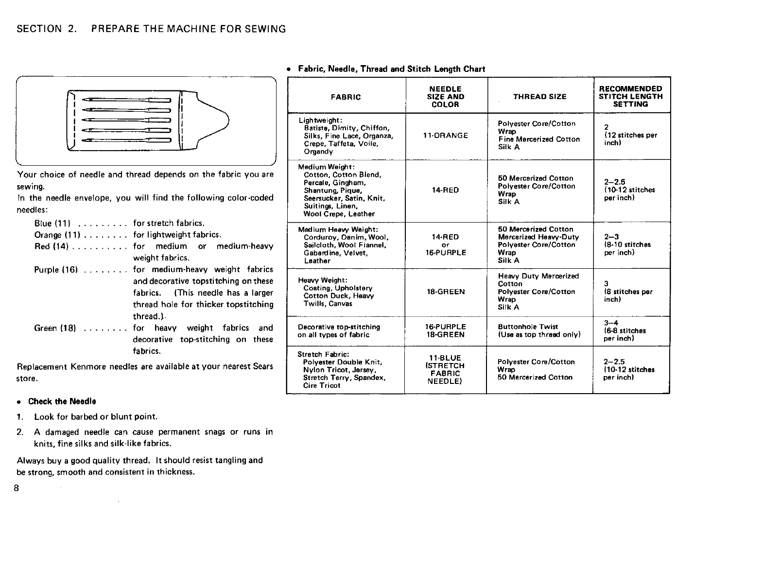 •Fabric, Needle, Thread and Stitch Length Chart ...... 8
