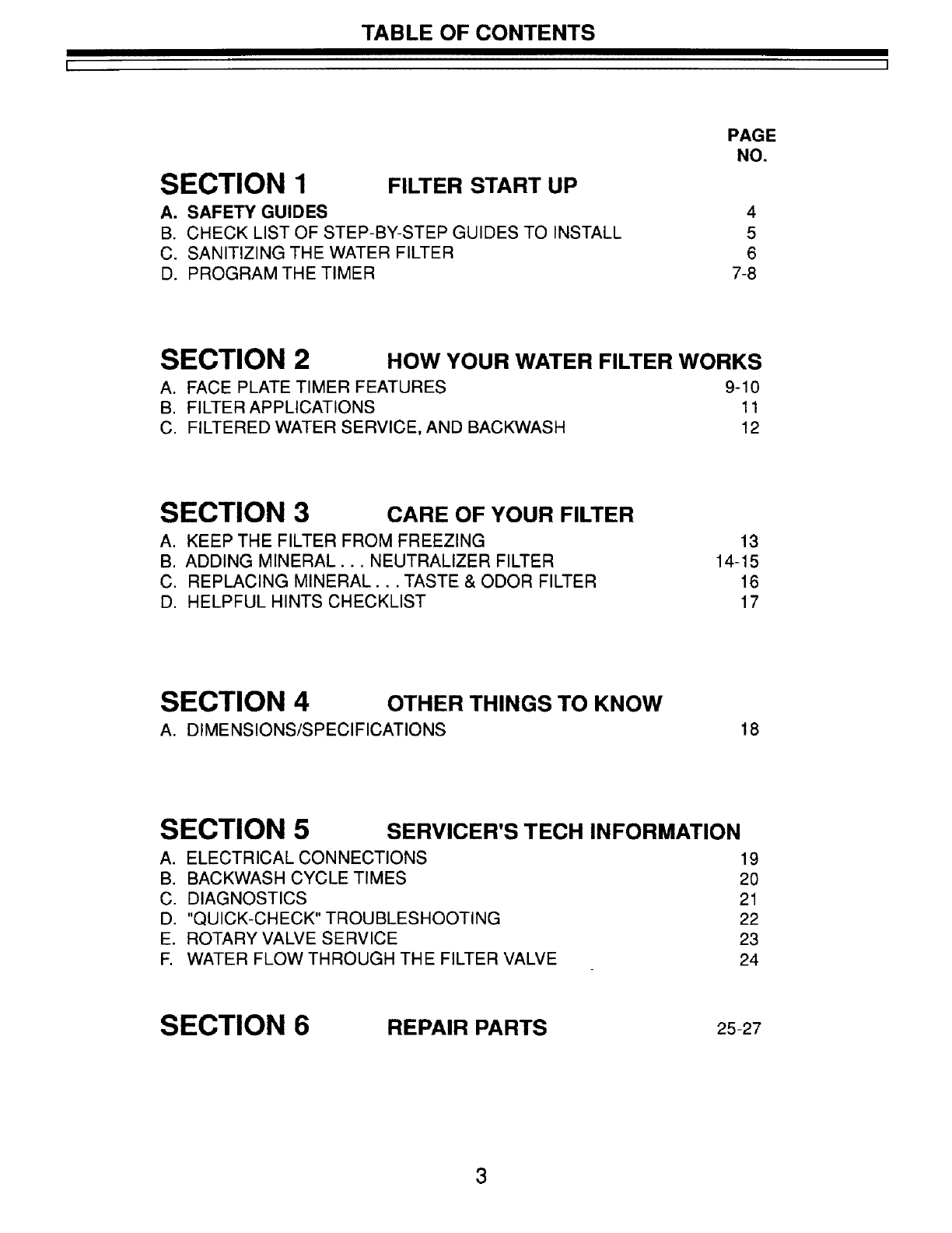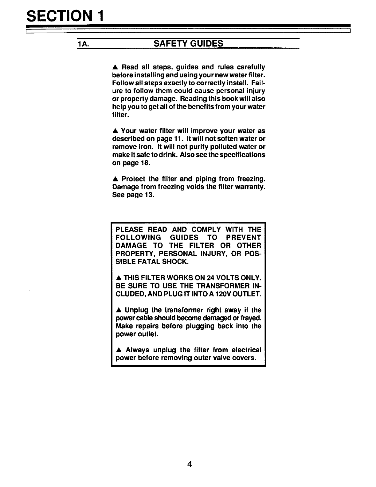 SECTION 1 FILTER START UP