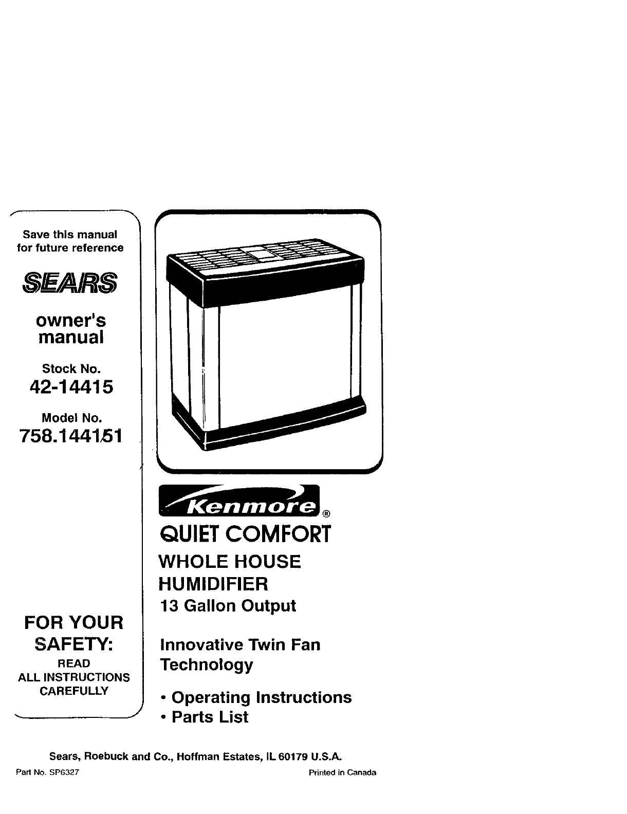 758144151 758144151 KENMORE HUMIDIFIER - Manuals and Guides L0104162 View the owners manual for your KENMORE HUMIDIFIER #758144151. Home:Heating & Cooling Parts:Kenmore Parts:Kenmore HUMIDIFIER Manual
