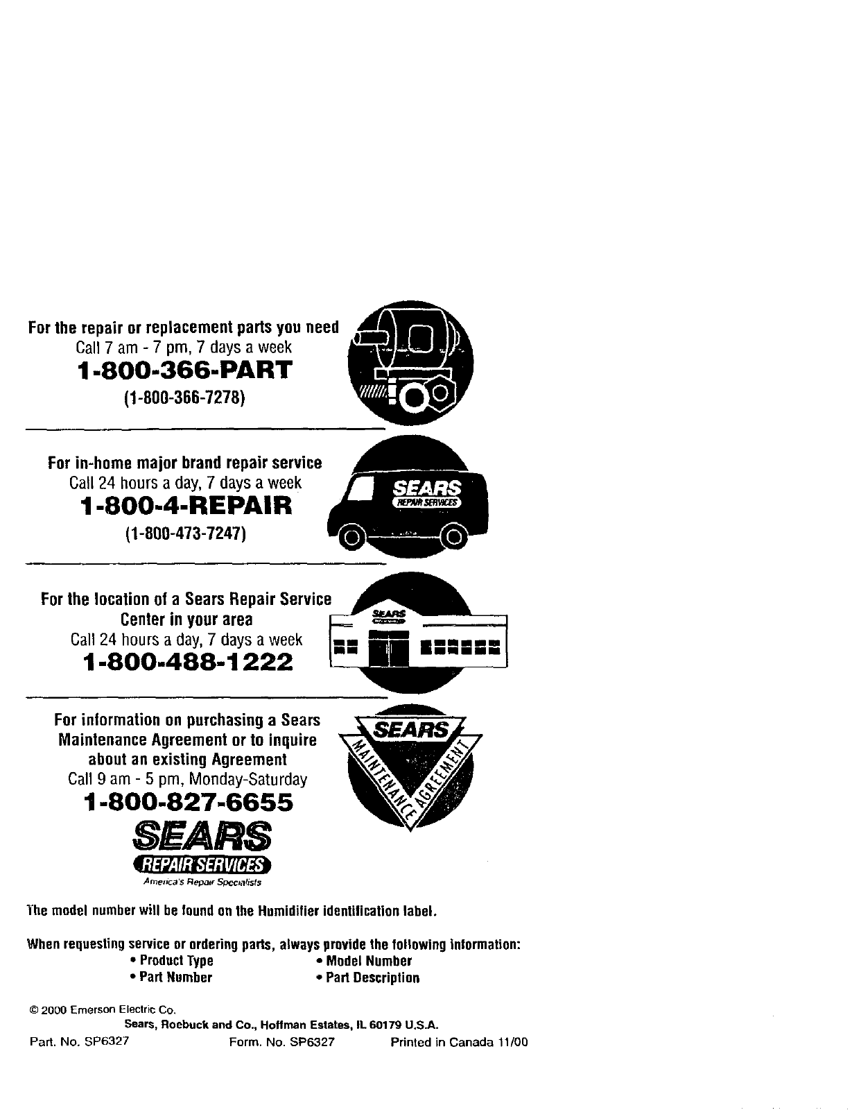 Part. No. SP6327 Form. No. SP6327 Printed in Canada 11/00
