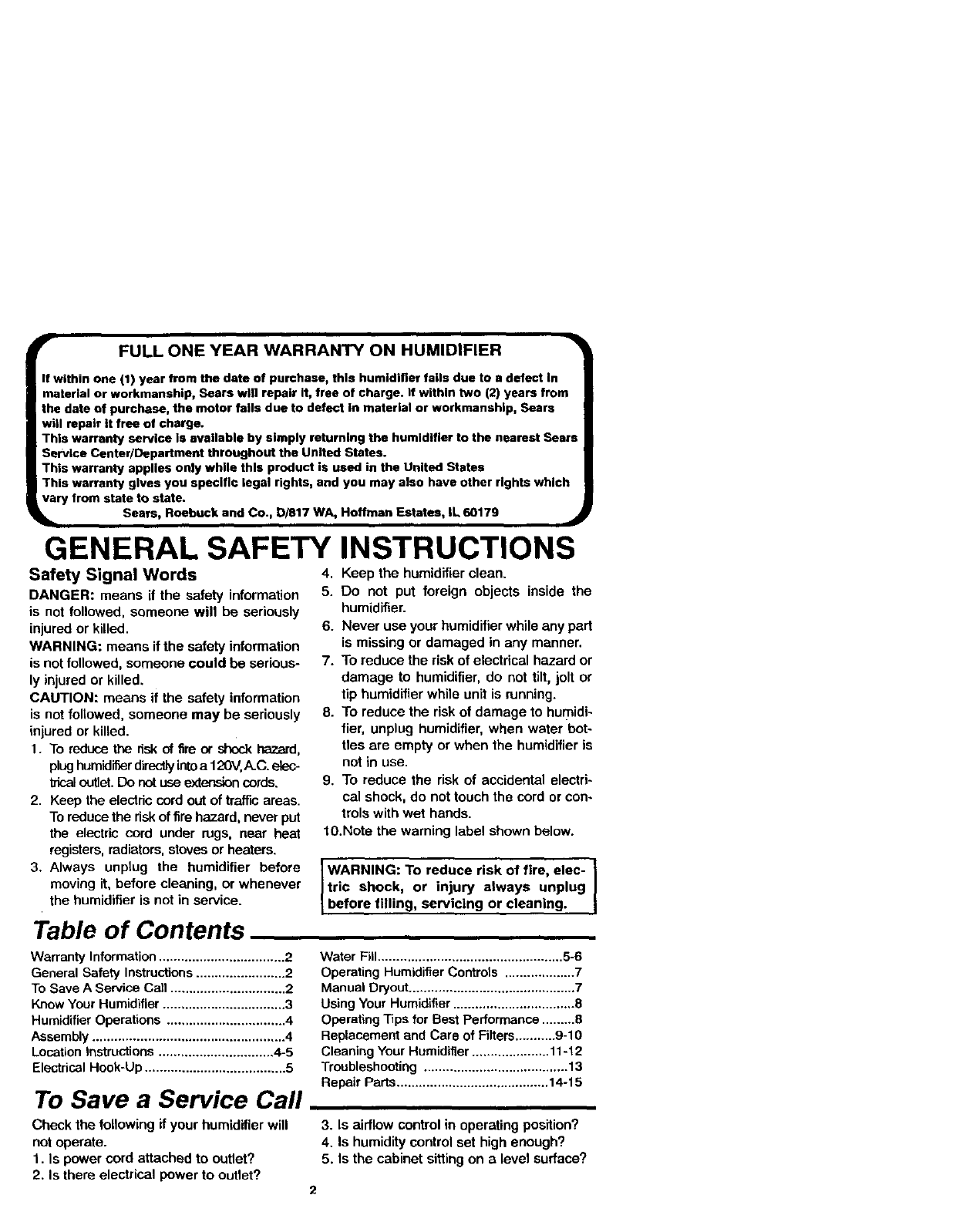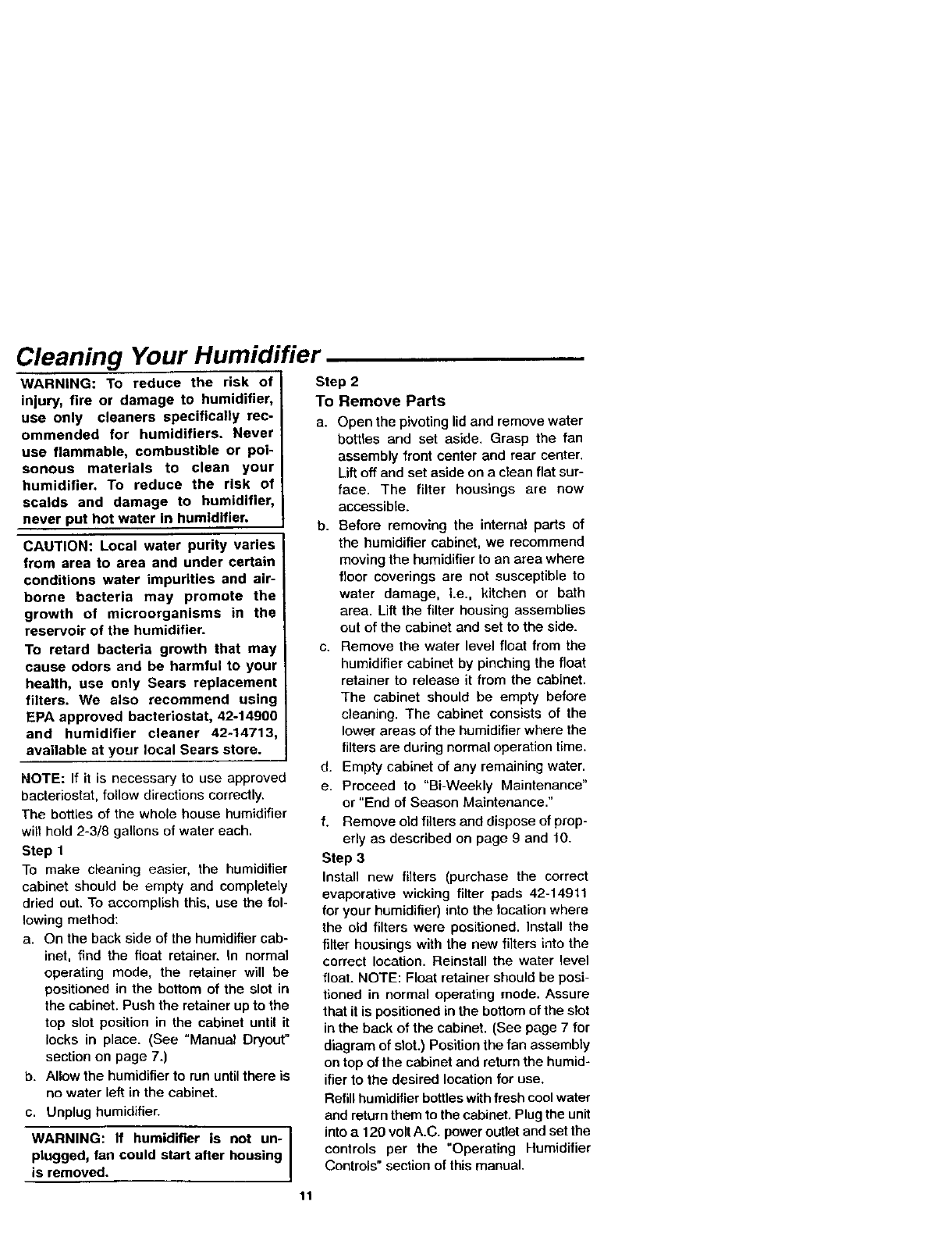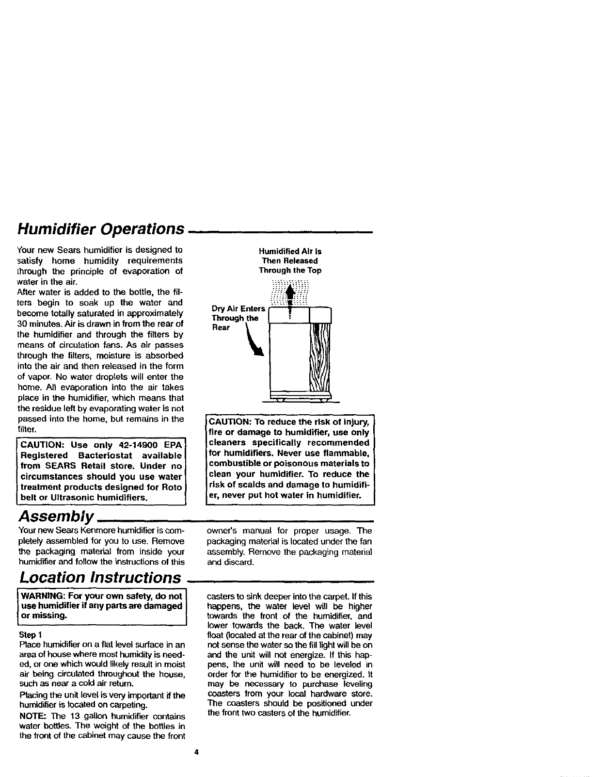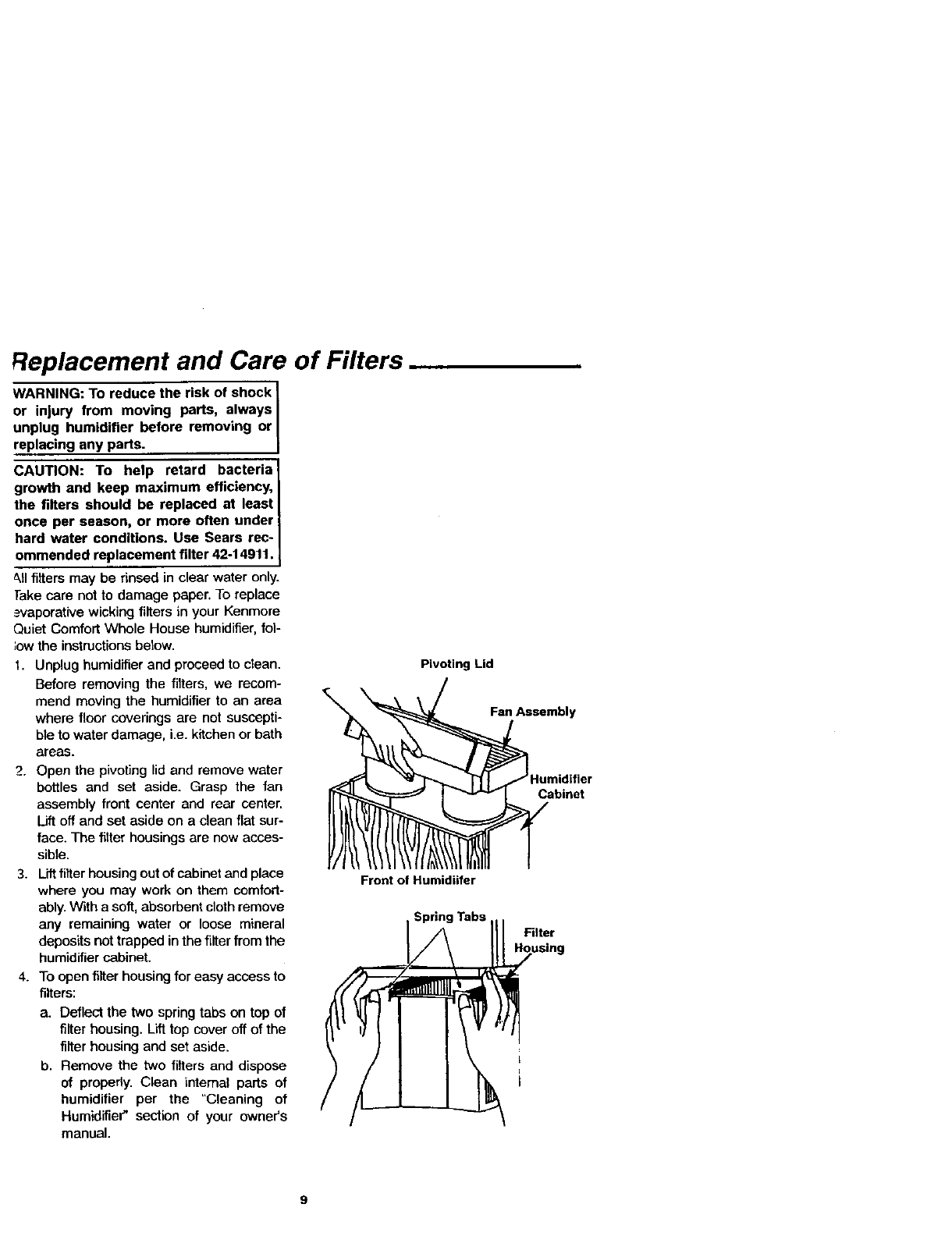 KENMORE Humidifier Manual L0104162 KENMORE Humidifier Owner's Manual, KENMORE Humidifier installation guides