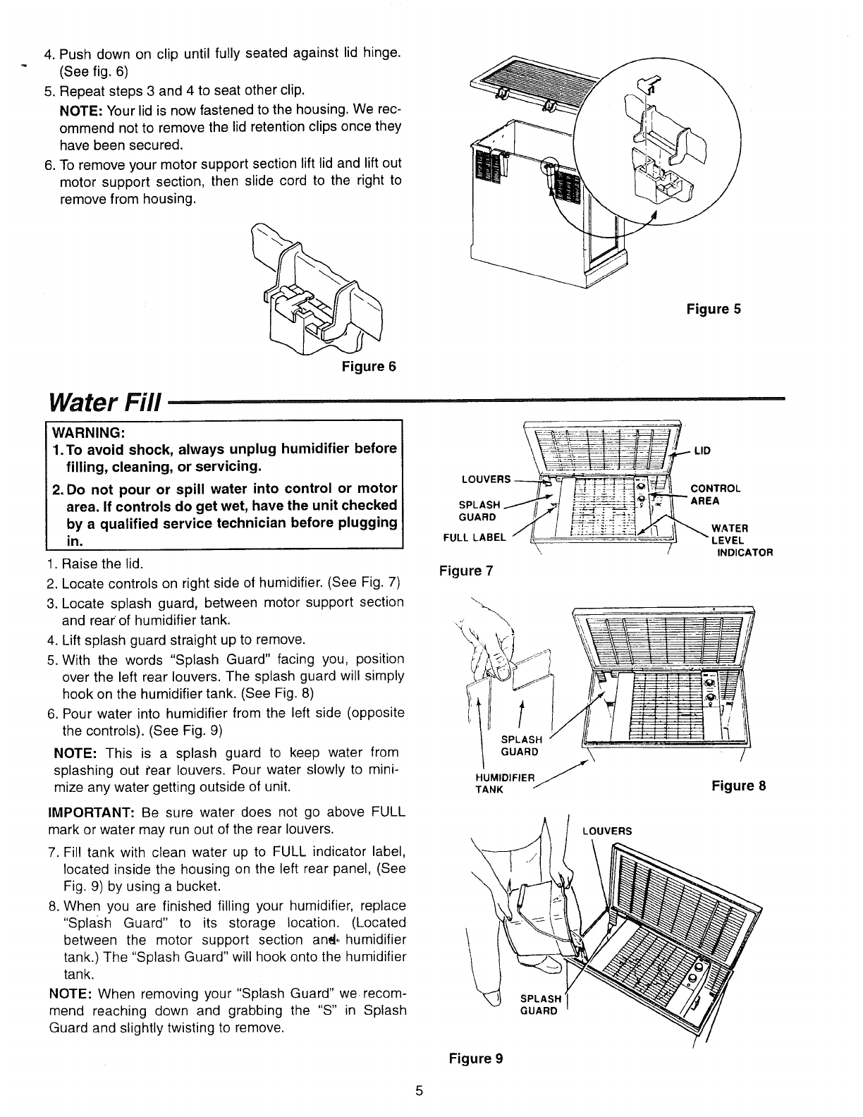 3. Always unplug the humidifier before moving it, removing the lid or motor support section, before cleaning, or