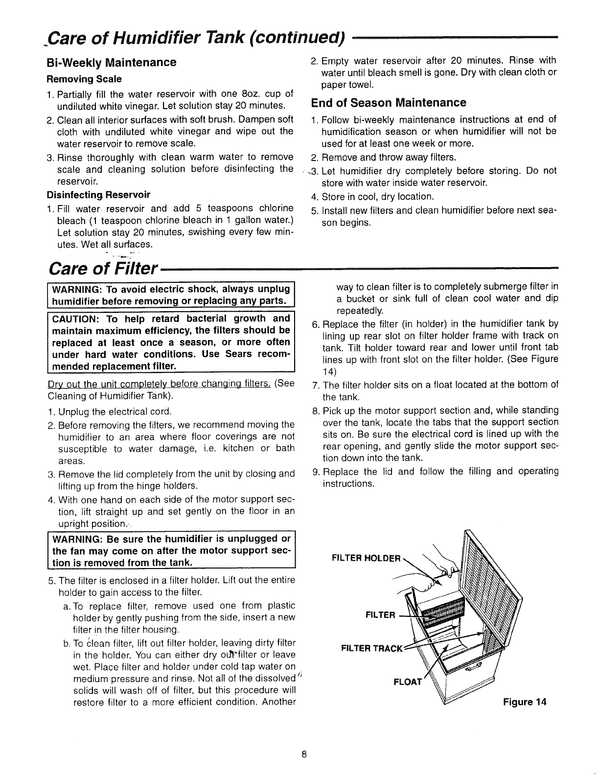 8. Never use your humidifier while any part is missing or damaged in any manner.