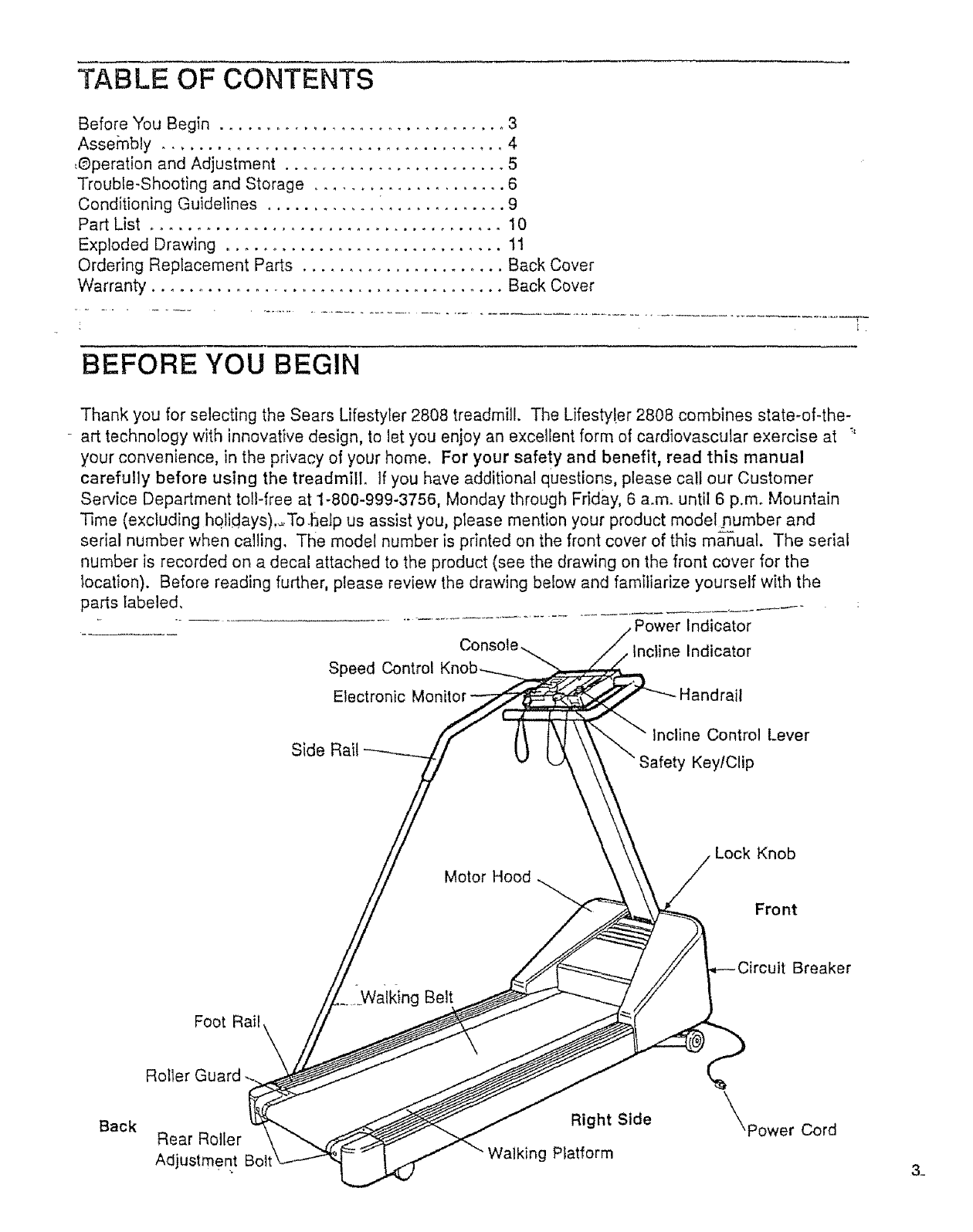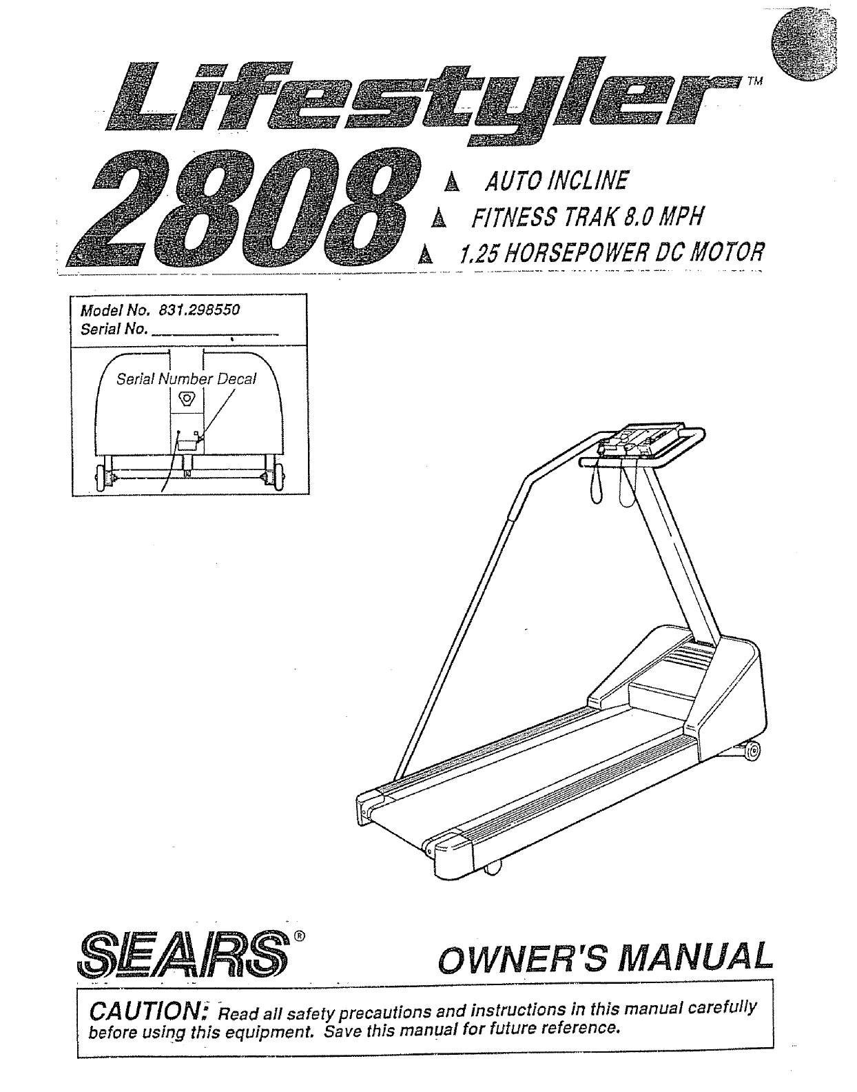 Thank you for selecting the Sears Lifestyter 2808 treadmill. The Lifesty!er 2808 combines state-of-the-