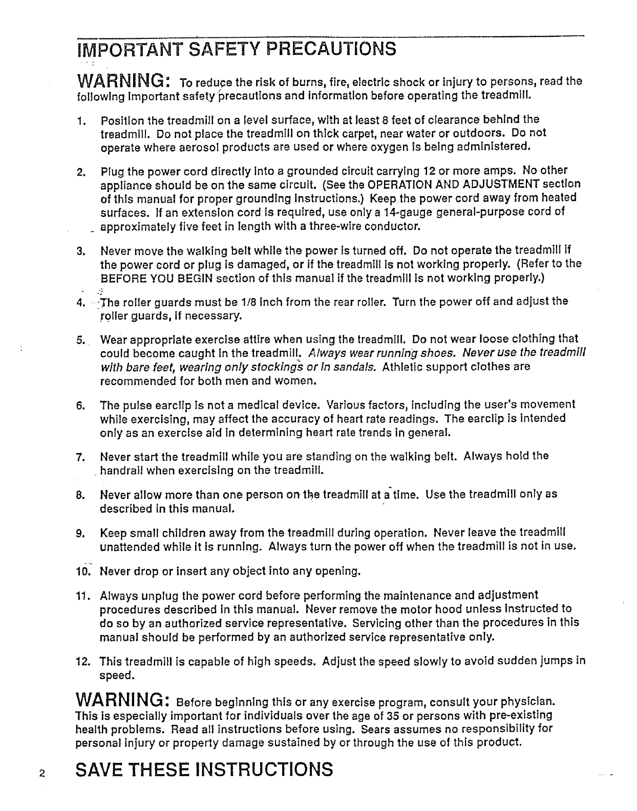 health problems. Read all instructions before using. Sears assumes no responsibility for