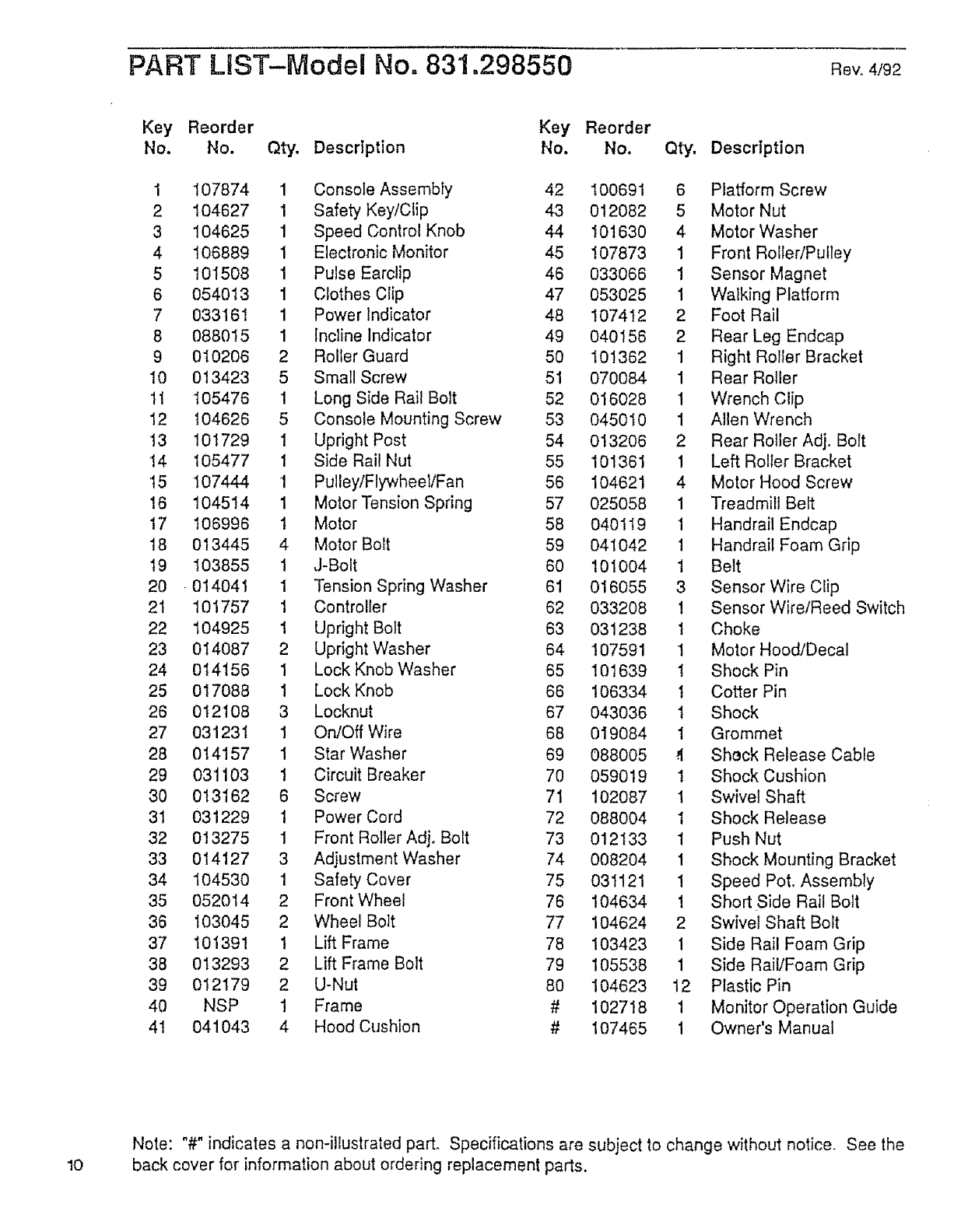 BEFORE YOU BEGIN section of this manual if the treadmill Is not working properly,)
