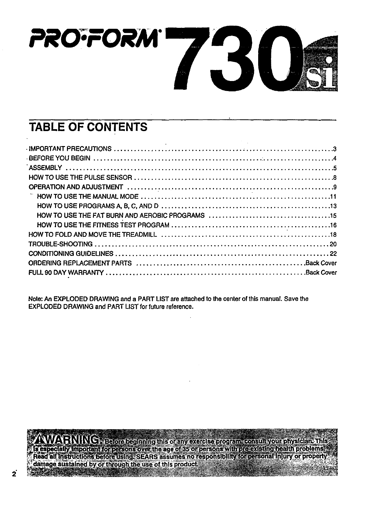 Thank you for selectingthe PROFORM" 730si tread-