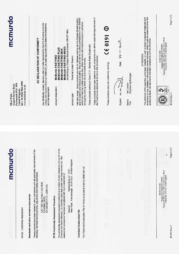 Seas of Solutions McMurdo PLB-4 Fastfind Max User Manual McMurdo