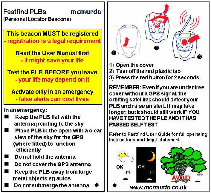 and Rescue services, deliberate misuse of the PLB could result in penalty.