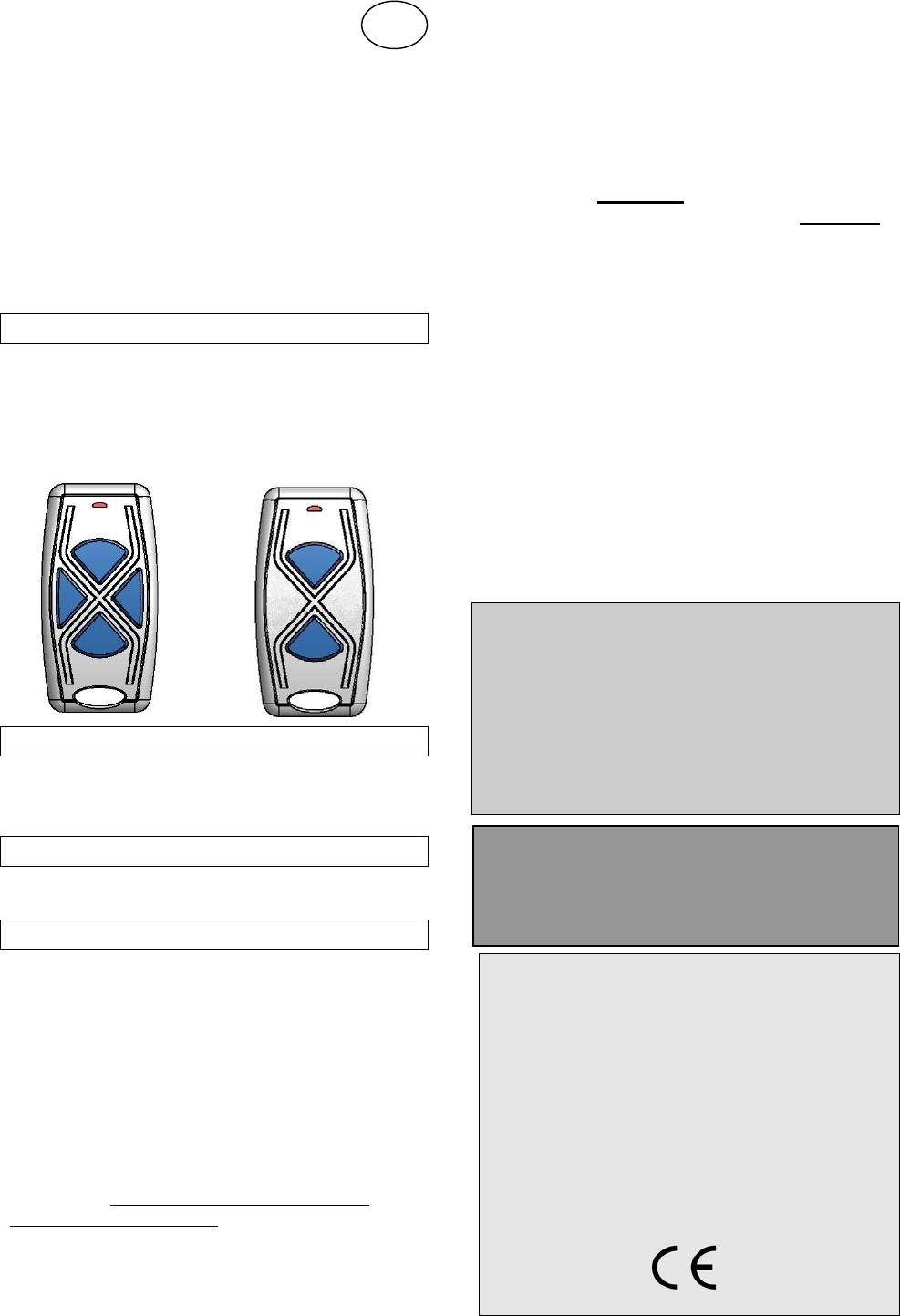 Seav s.r.l. REMOTE CONTROL TRANSMITTER Tx BeSmart GB