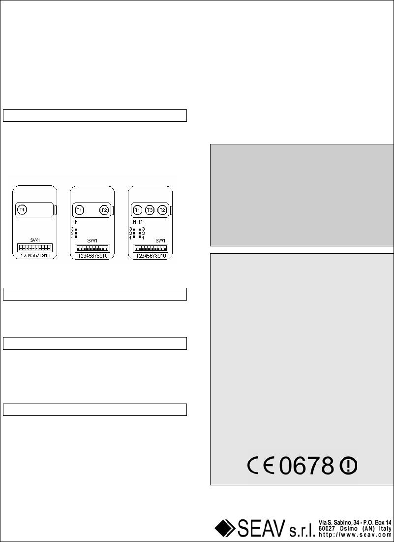 Seav s r l TXSNEW Remote control of electric and electronic equipmen User Manual 304995