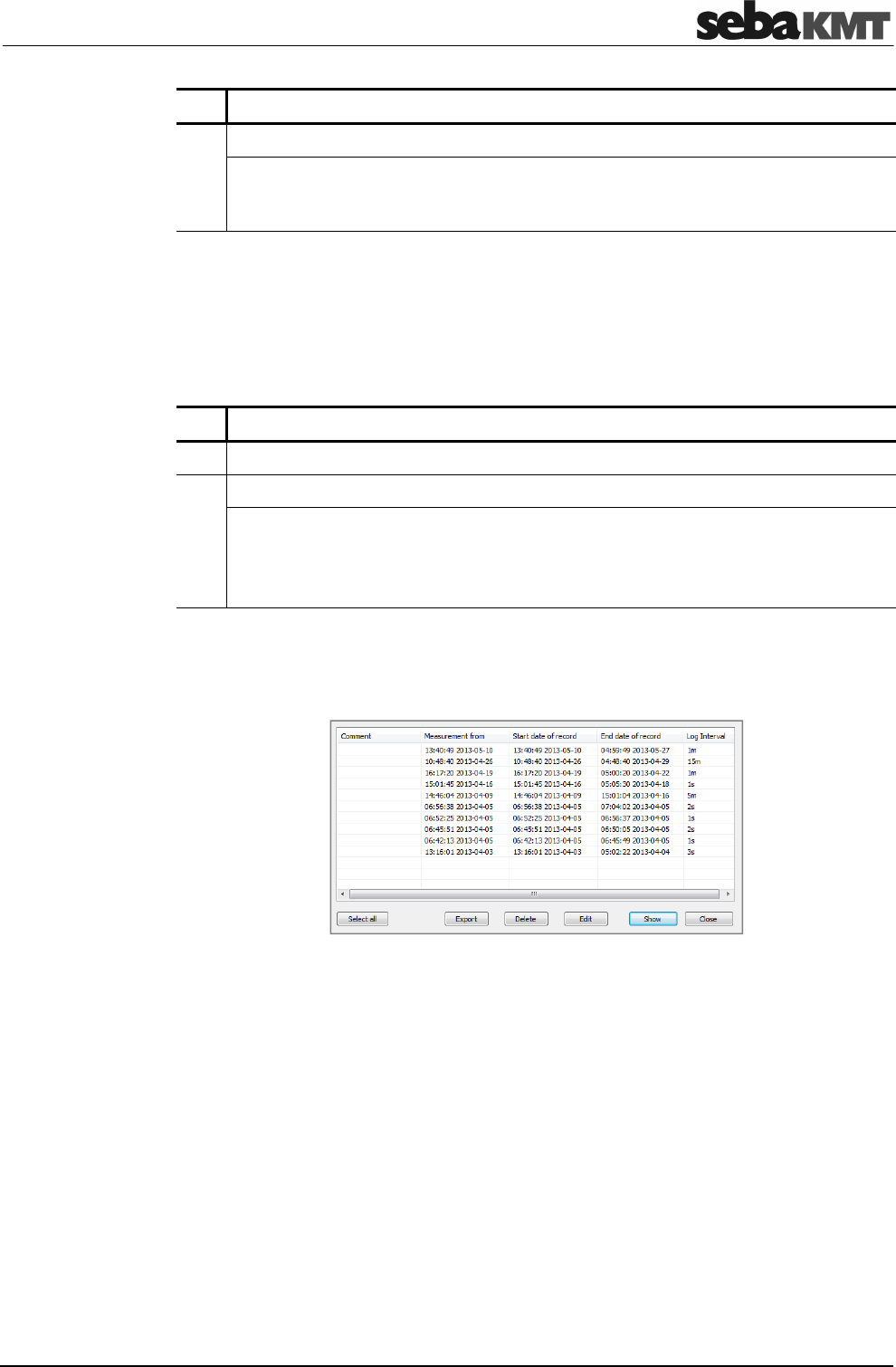 Result: A new window shows all measurement data records saved for this device