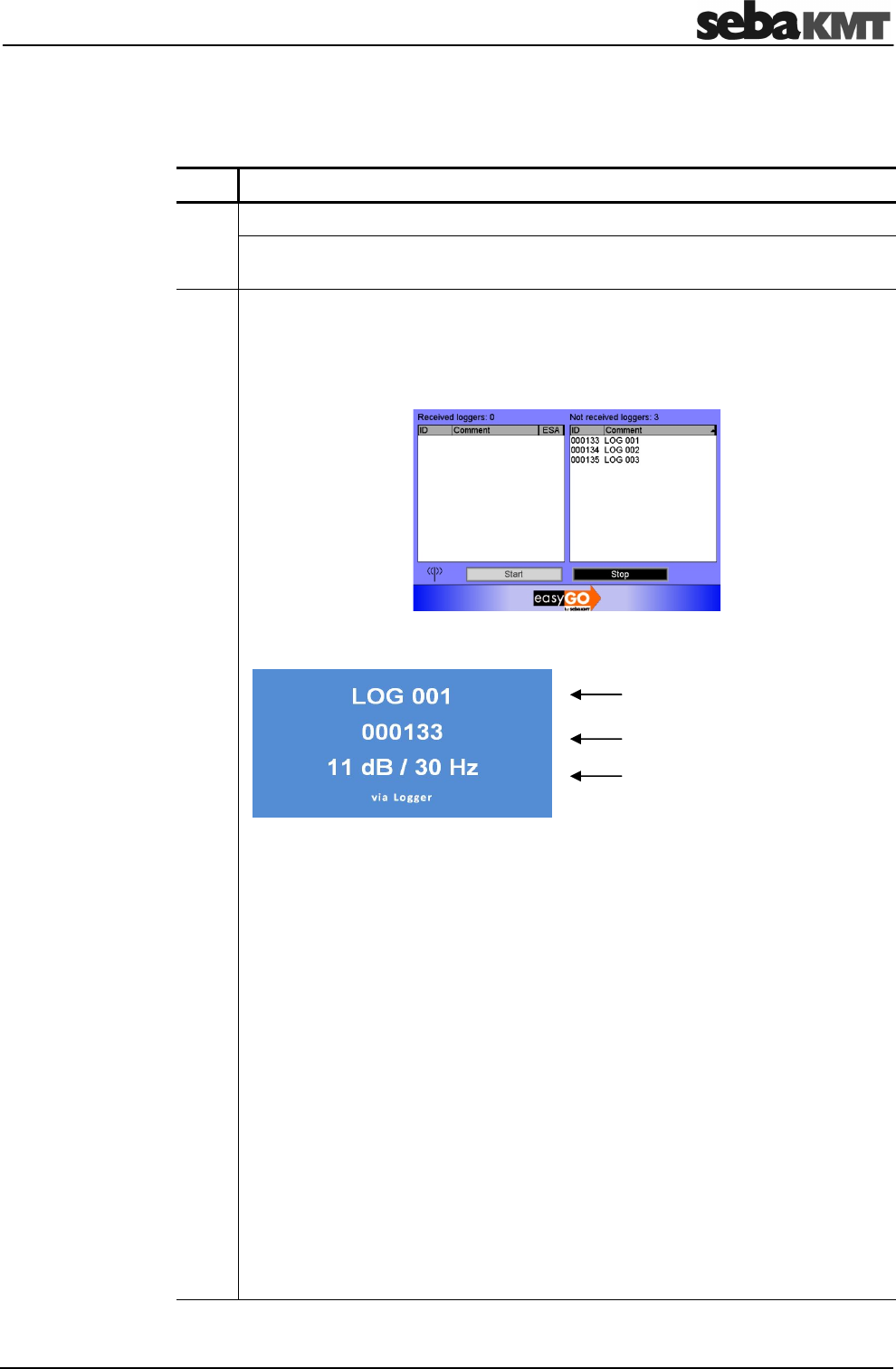 Result: The logger’s measured data is shown (see page 42). Use the ESC