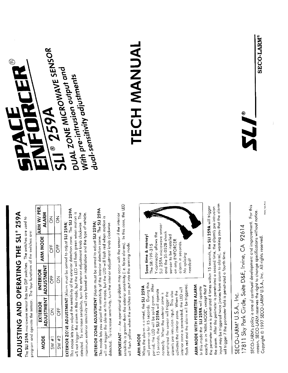 Seco Larm USA 259A Car Alarm Transmitter FDS User Manual 54778