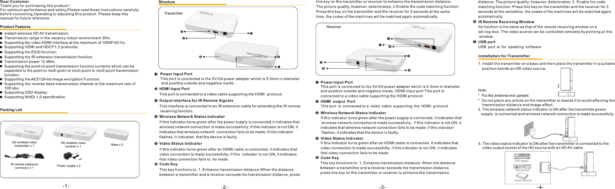 Seco Larm USA MVE-WH010QR Wireless HDMI User Manual 118010370 HKSH0030SW New QU