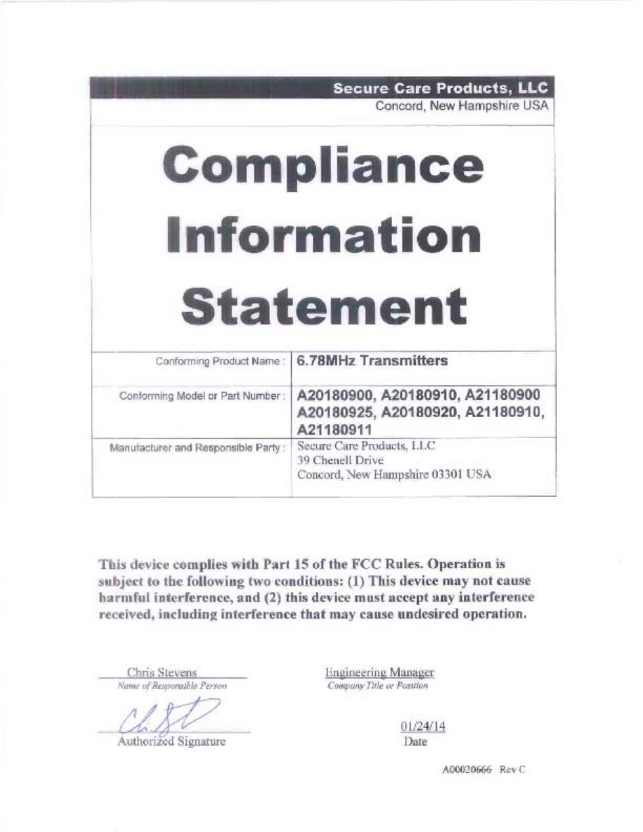 particular purpose, title and/or non-infringement. Secure Care also disclaims all obligations that might otherwise arise