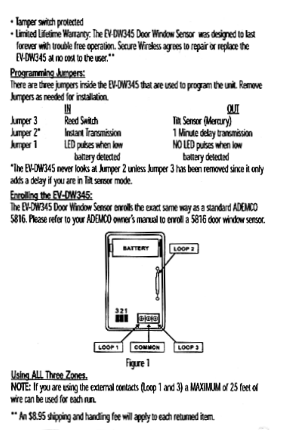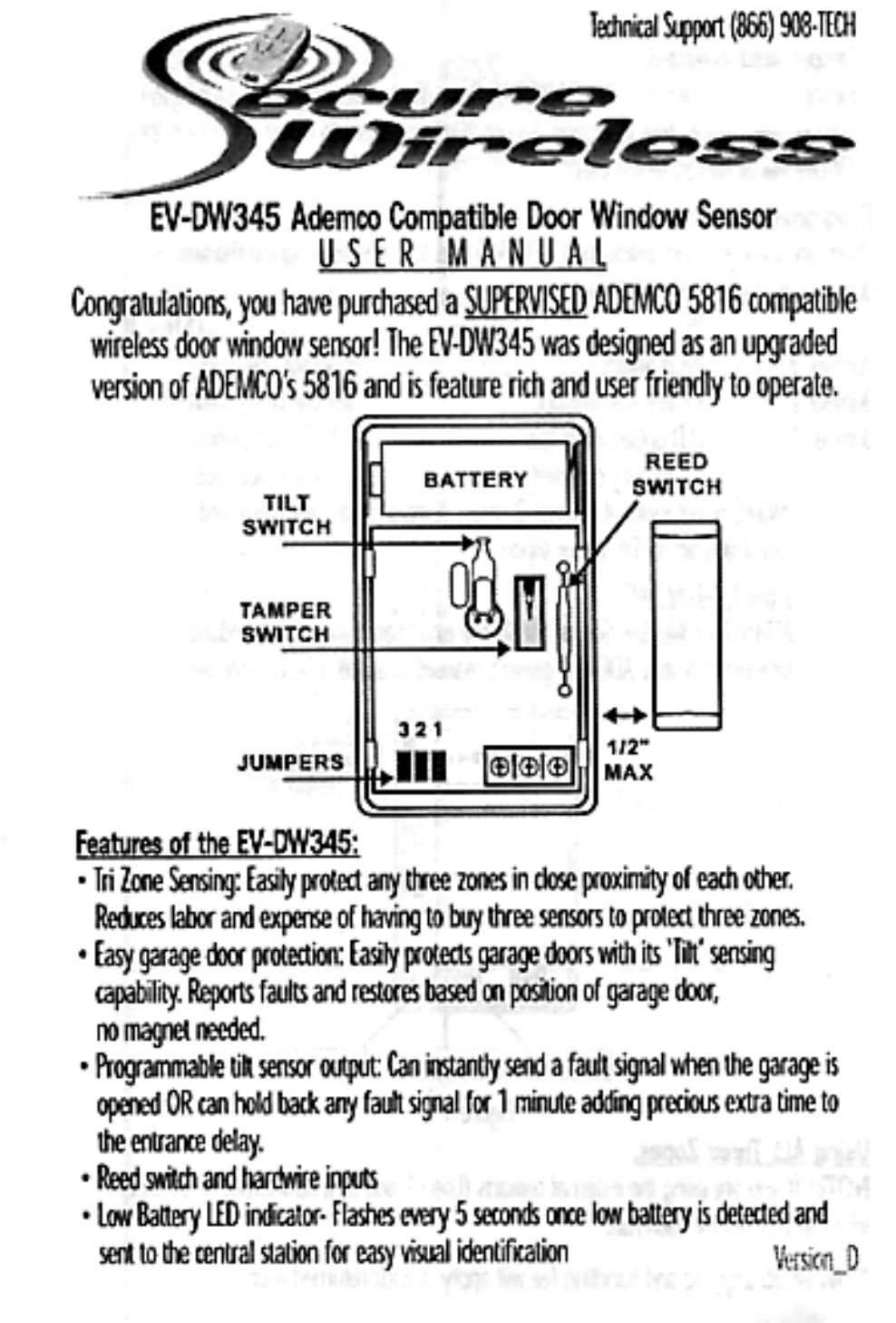 Secure Wireless EVDW345 Wireless Door/Window Transmitter User Manual